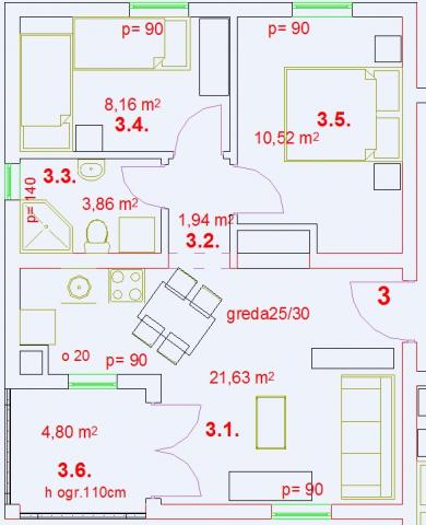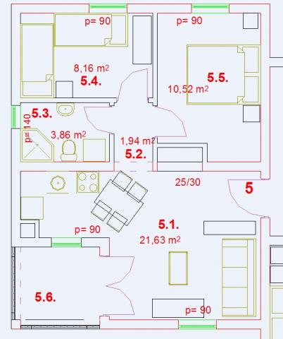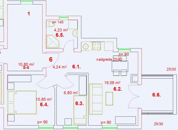 Apartma za štiri osebe, možnost dveh dodatnih ležišč (0 m2)