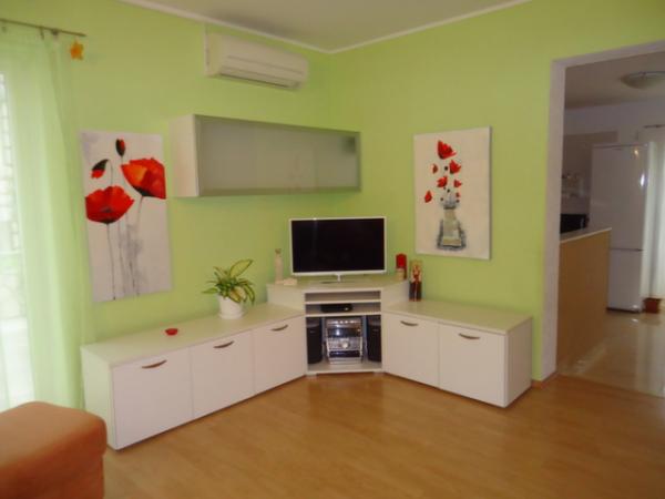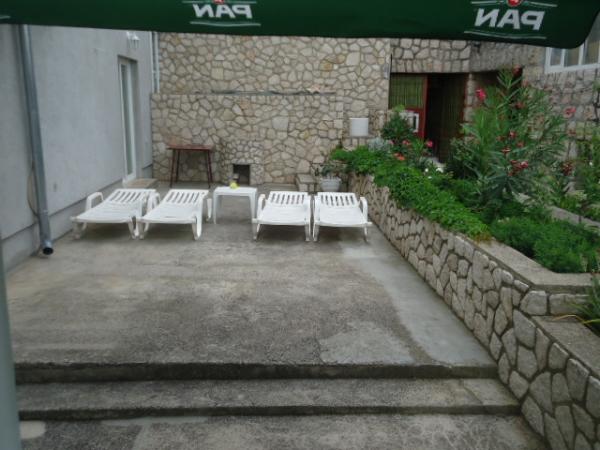 Stanovanje je novo, moderno in popolnoma opremljeno. To se nahaja v družinski hiši v mirnem delu Novi Vinodolski delnim pogledom na morje, z dostopom do dve velike terase in zelenice in parkirišče na vhodu v stanovanje. Objekt se nahaja 7 minut hoje do centra in 8 minut hoje do plaže. Apartma ima 2 spalnici, kopalnica z WC-jem (tuš, pralni stroj, sušilnik za lase), dnevna soba (TV / SAT, DVD, internet, radio), kuhinja (pomivalni stroj, mikrovalovna pečica, aparat za kavo, električni vode, toaster, pečica, kuhalna plošča - 4 plin, hladilnik) in jedilnih. V eni sobi je ena postelja (160x200) za 2 osebi, v drugi sobi 2 enojni postelji (90x200) za dve osebi, in v dnevni sobi razširja eno kavč v posteljo (160x190) za 2 osebi, in če je potrebno, in otroška posteljica. V terase so opremljeni z mizo in stoli, ležalniki (2 kosa) in sončnikov. Na travniku je kamin z žarom in ražnju, in gugalnice in seesaws za otroke.