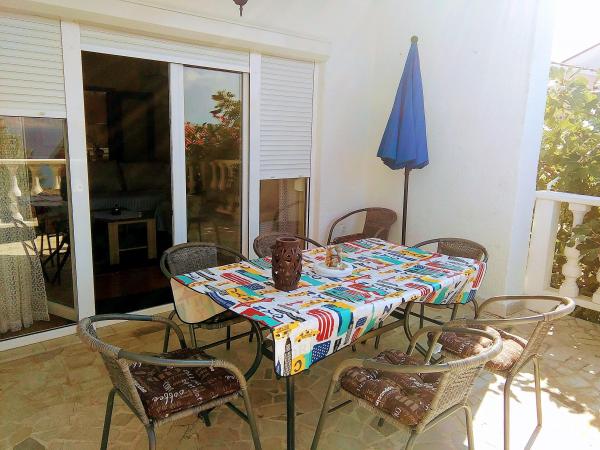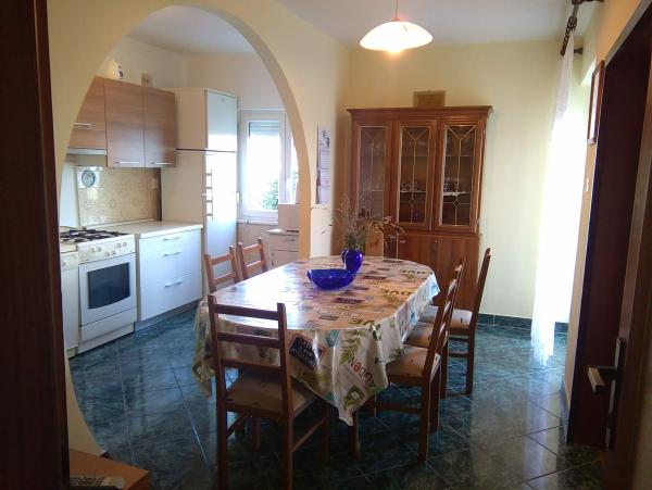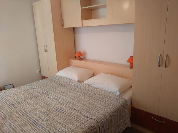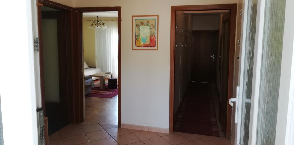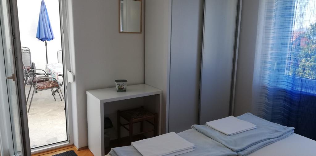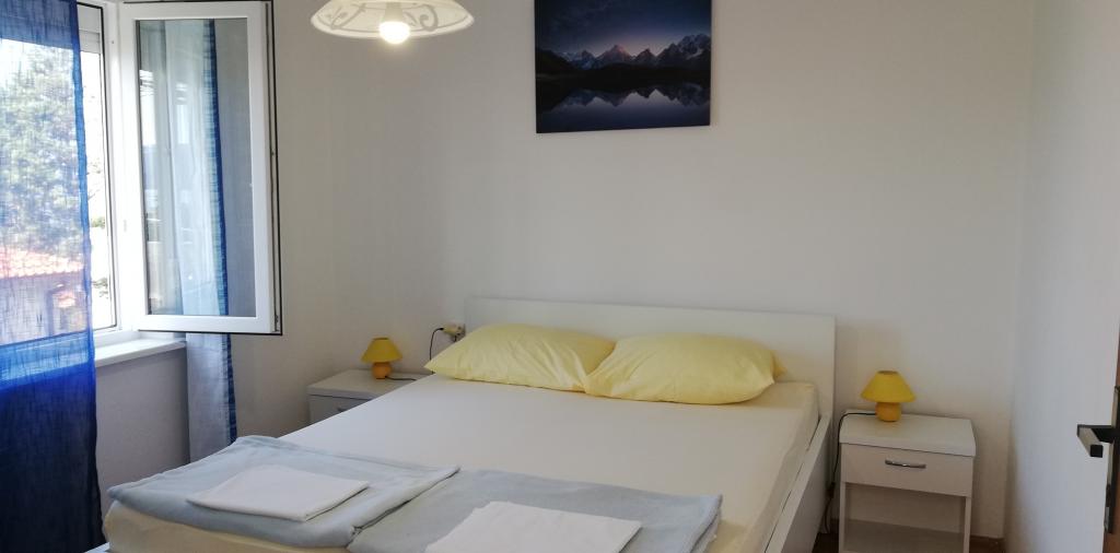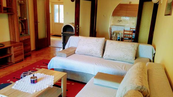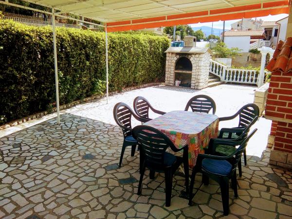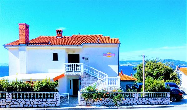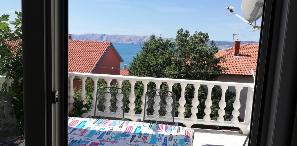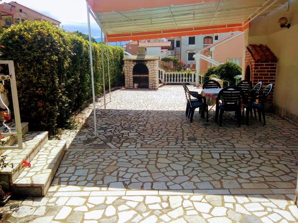 Popolnoma opremljen apartma od 100 m2 z vrtno garnituro. Nahaja se v mirnem delu Novega Vinodolskega, od apartmaja je 400 m do plaže ali 5 minut hoje, 700 m do centra mesta, 500 m do prve restavracije, do najbližje trgovine 50 m. Ima tri spalnice. Dve sobi imajo majhen balkon in tretja spalnica ima teraso s pogledom na morje. Ima dve kopalnici, ena velika in ena manjša. Kuhinja je v celoti opremljena s pomivalnim strojem, kotličkom, mikrovalovno pečico, hladilnikom, štedilnikom, filterom za kavo. V kuhinji je jedilnica z veliko mizo in stoli. Jedilnica ima majhen balkon s pogledom na vrt in morje. Dnevna soba ima klimatsko napravo, izhod na teraso s pogledom na morje in dodatno ležišče. Objekt ima WI-FI, konec objekta je parkirišče za 2-3 avtomobile. Na dvorišču je predel za sedenje in žar.