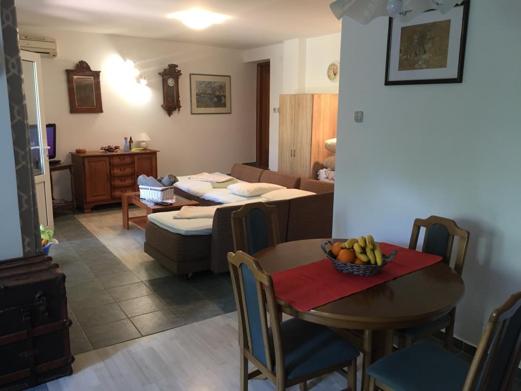 Objekt se nahaja v centru mesta in je ena redkih stavb s tihim in zelenim vrtom. Popolnoma in lepo opremljen studio apartma se nahaja v pritličju in izstopa na teraso in velik vrt s sedežno garnituro. Dodatno ležišče je na voljo otrokom do 12 let, ki se ne zaračuna. Parkirišče je brezplačno in parkirišče se nahaja čez objekt. TV je opremljen z razširjenim paketom MAX TV. V dvorišču je kamin.