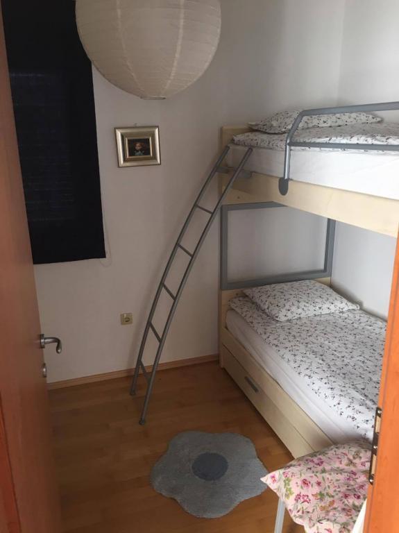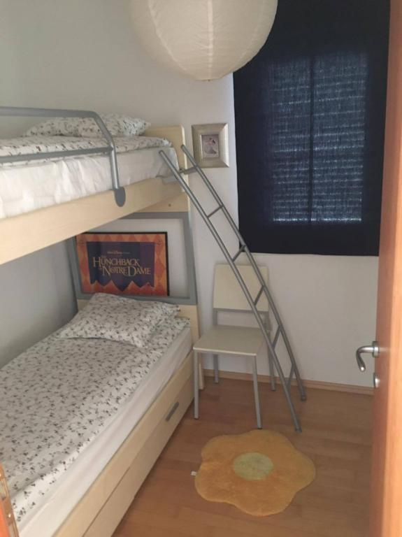 Turistična taksa je vključena v ceno.Stanovanje je sestavljeno iz majhnega hodnika, dnevne sobe z velikim kavčem, ki služi kot zakonska postelja, kuhinje in kopalnice. V apartmaju sta tudi dve ločeni spalnici s pogradi in garderobami. Najlepše mesto v stanovanju je terasa z veliko mizo za šest oseb.