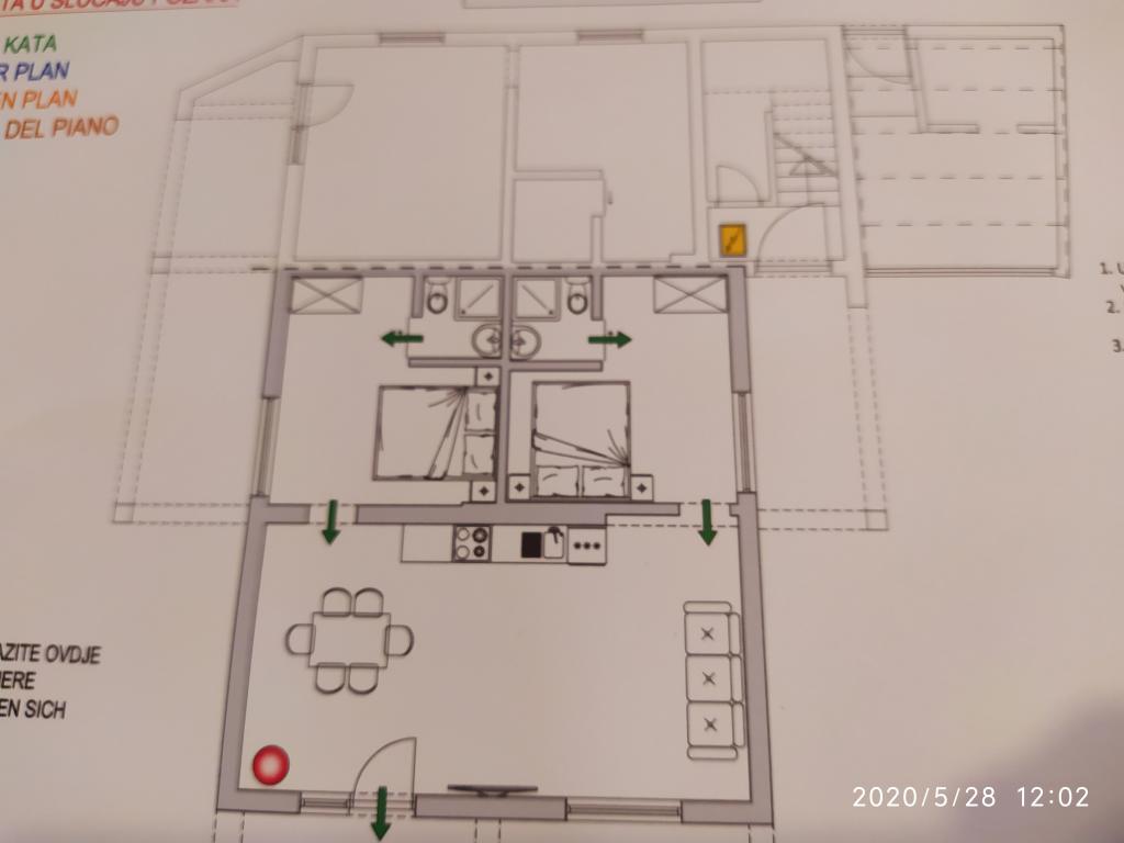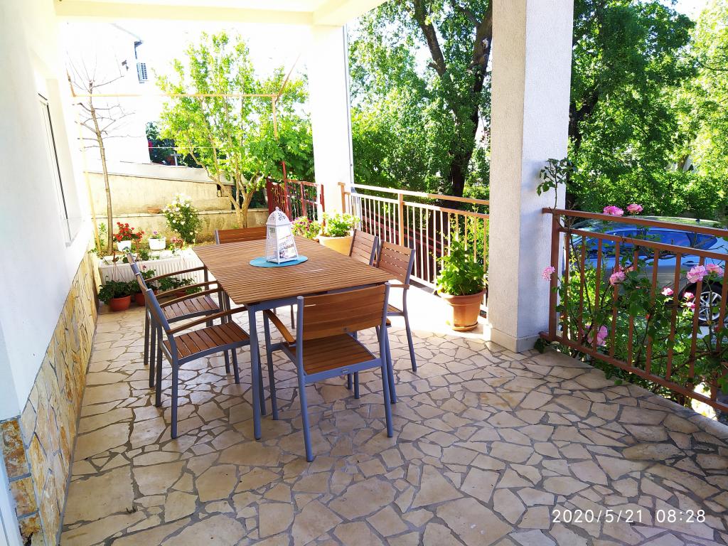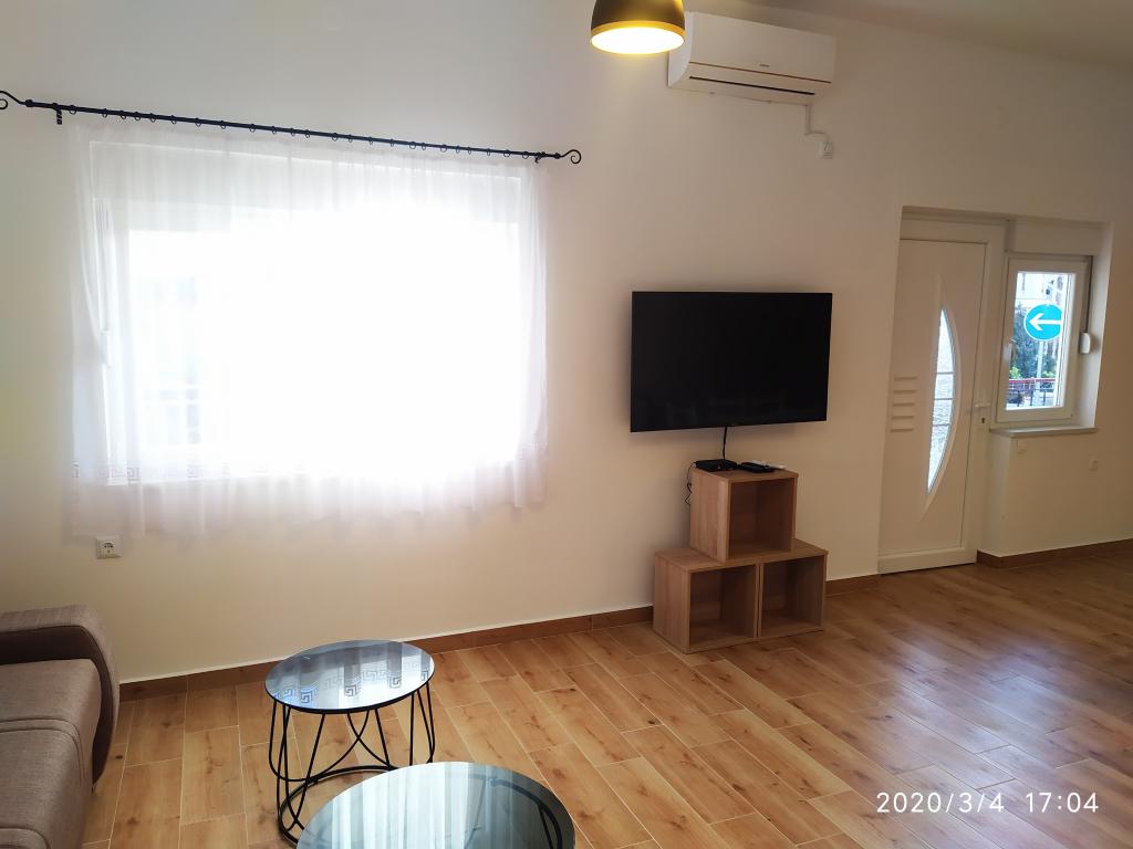 Objekt se nahaja v mirnem delu mesta, le nekaj minut hoje od centra in deset minut hoje od plaže. Objekt ima dve dvoposteljni sobi in dva apartmaja. Sobe se nahajajo v prvem nadstropju. Vsaka soba ima svojo kopalnico znotraj sobe in balkon. Sobe so opremljene z zakonsko posteljo in klimatsko napravo. Gostje, ki se odločijo za rezervacijo sobe, imajo možnost uporabe letne kuhinje, ki je opremljena s plinskim štedilnikom, hladilnikom, kuhalnikom vode in potrebno črno belo posodo. Wi-fi, klima, parkirišče in uporaba letne kuhinje so vključeni v ceno. Uporaba pralnega stroja se zaračuna 40,00 HRK na pranje. Apartmaji so bili zgrajeni in urejeni leta 2020. Vsak apartma ima parkirišče, teraso, klimo, televizijo z Evo TV, wi-fi, sušilec za lase, likalnik, likalno desko, kuhinjo opremljeno z električnim štedilnikom, napo, mikrovalovno pečico, kuhalnikom vode, hladilnikom, pomivalnim strojem, pralnim strojem in črno. in bele posode.