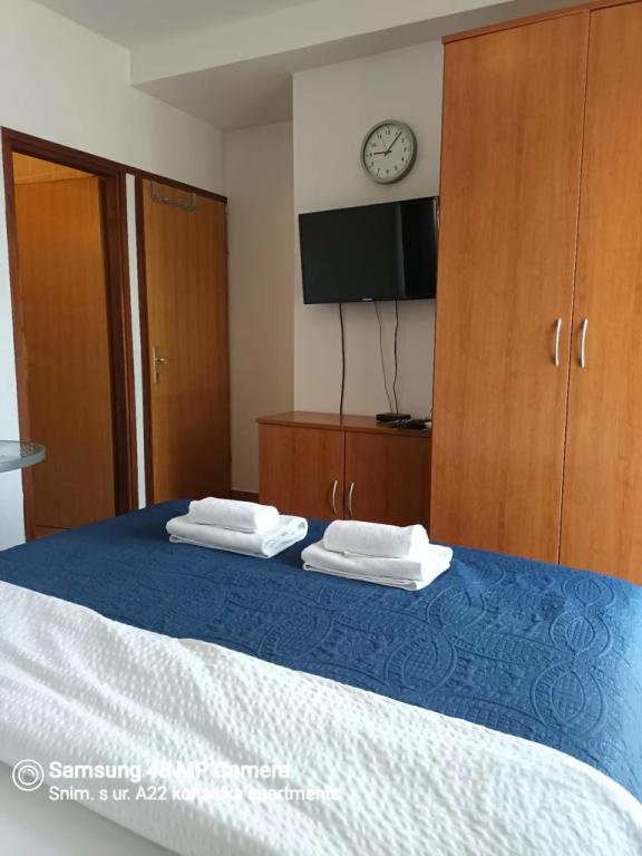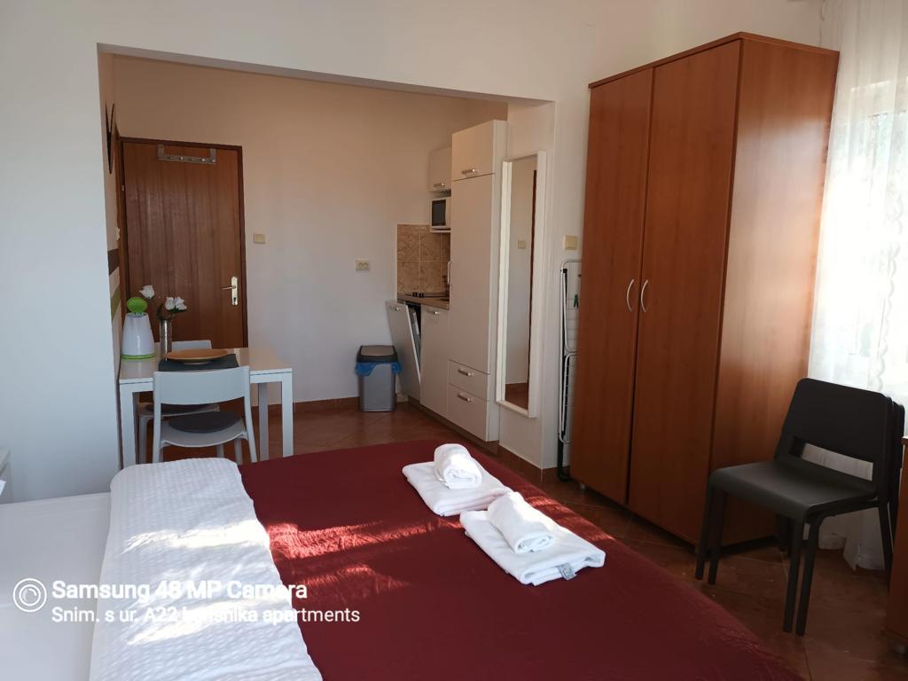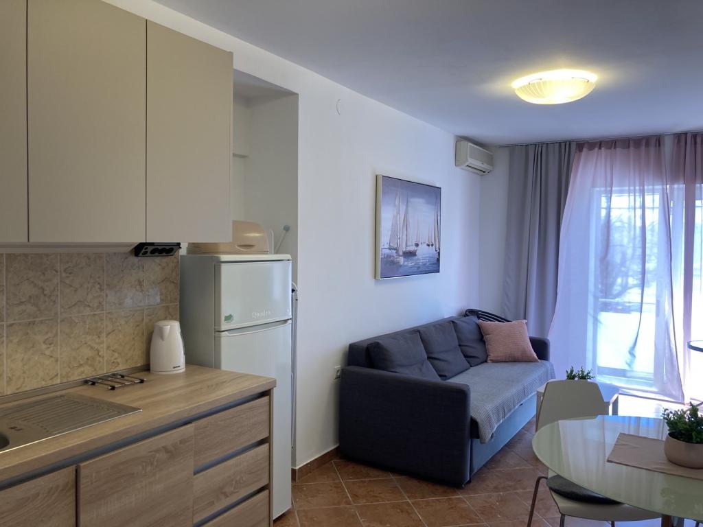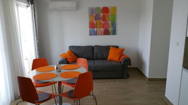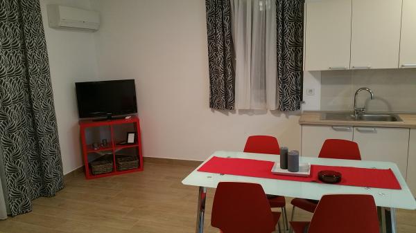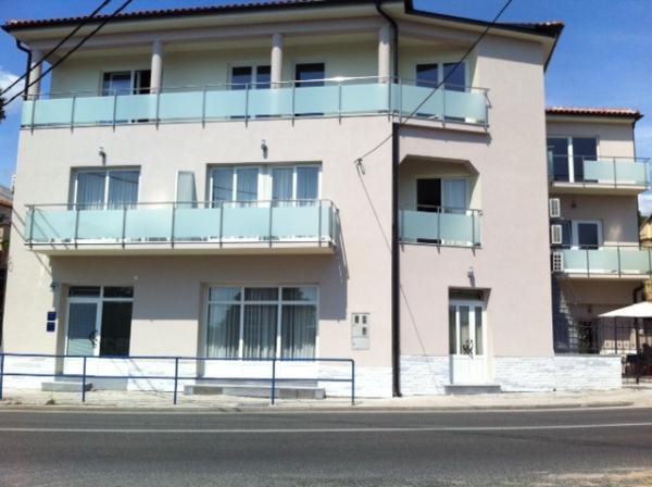 Novo prenovljeni in sodobno opremljeni apartmaji, ki se nahajajo ob cesti v bližini morja in sto metrov od centra. Apartmaji imajo balkone s pogledom na morje. Apartmaji imajo Wi-Fi, TV z ravnim zaslonom, SAT TV, inverter klimatsko napravo. Oddaljenost od plaže je 100 m in se razlikujejo od peščene, skalnate, prodnate in betonske.