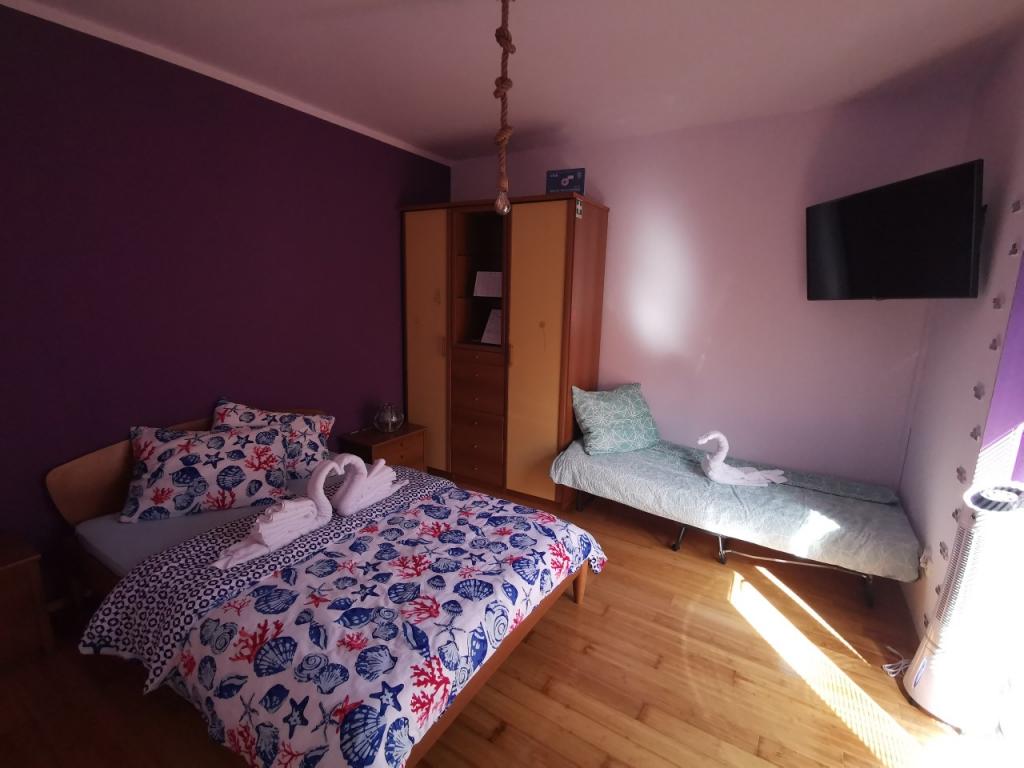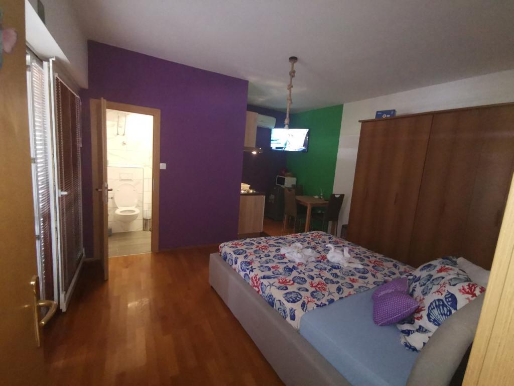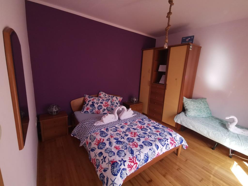 Popolnoma in moderno opremljen apartma s 6 ležišči za najem z možnostjo dodatnih 2 dodatnih ležišč s čudovitim pogledom na morje, v bližini vseh udobja, restavracij, morja in plaž. Idealno za miren družinski dopust. Izbirate lahko med peščenimi in prodnatimi plažami, ki so od apartmaja oddaljene 750m. Plaže sestavljajo nešteto udobja, ki so prilagojene otrokom vseh starosti. Stanovanje je sestavljeno iz spalnice, kopalnice, kuhinje in balkona, na voljo je čudovita terasa s pogledom na morje in žar. Vsako stanovanje ima tudi klimatsko napravo in brezplačen internet. Imamo tudi ograjeno parkirišče (150m stran od stanovanja), ki je v senci, tako da bo vaš kositer varno med počitnicami. Do centra je le nekaj minut hoje, tako da se lahko večeri napolnijo z različnimi aktivnostmi.