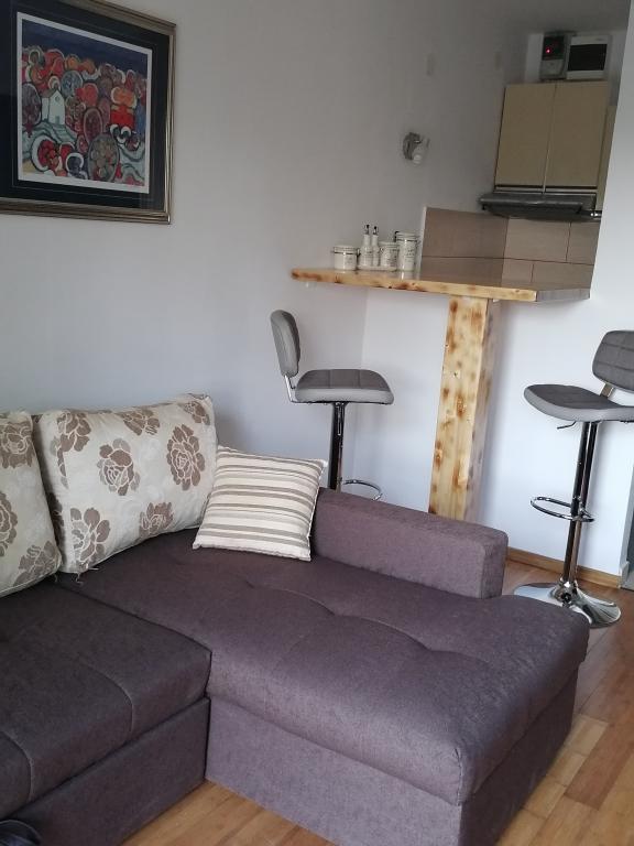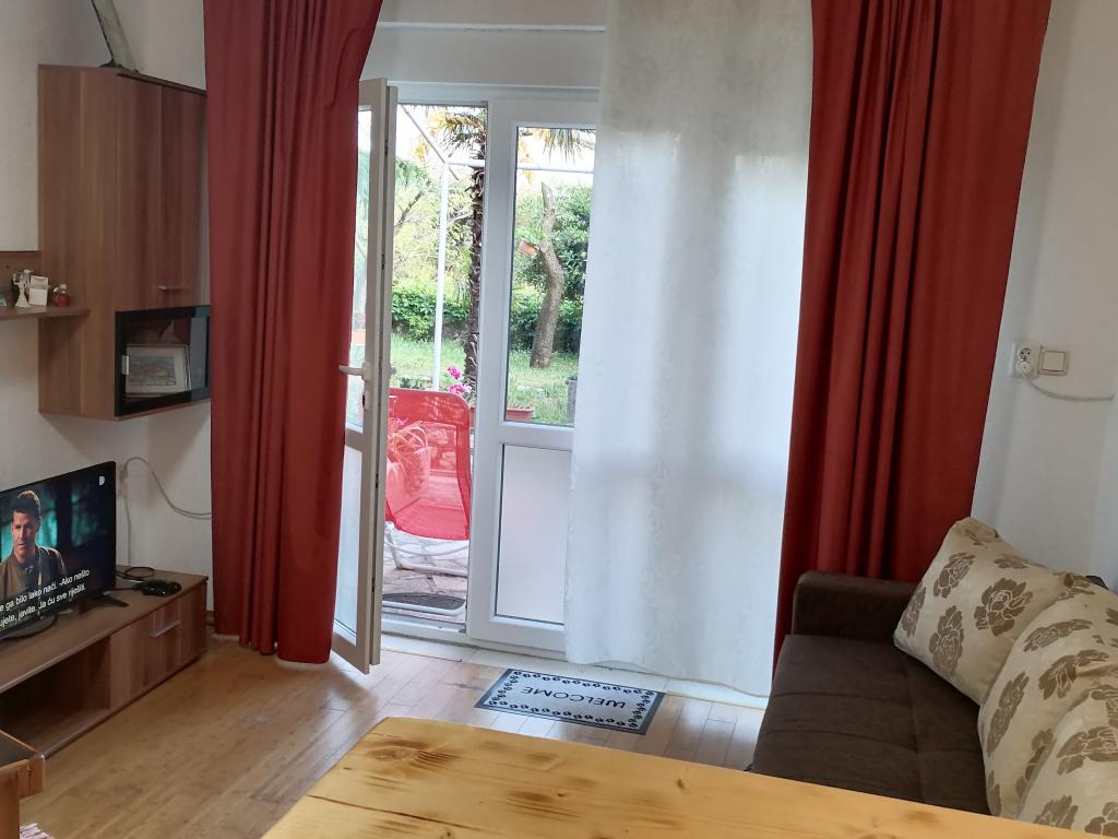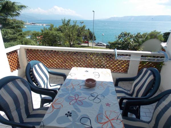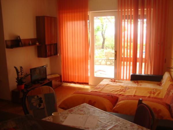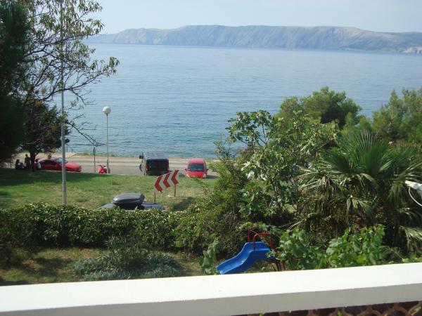 Naš studio apartma Novi se nahaja v pritličju družinske hiše, kjer sta še 2 apartmaja. Studio ima kuhinjo s kuhinjskimi pripomočki, posodo za prehranjevanje in kuhanje, opekač kruha, kuhalnik za vodo, kopalnico in dnevno sobo z raztegljivim kavčem, ki se zvečer spremeni v vašo spalnico. Na voljo je terasa s čudovitim pogledom na morje in otok Krk. Na dvorišču je žar, ki je na voljo vsem gostom hiše in gostiteljem.