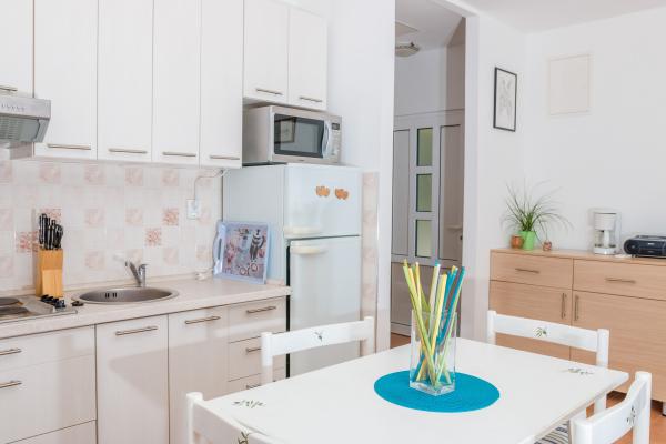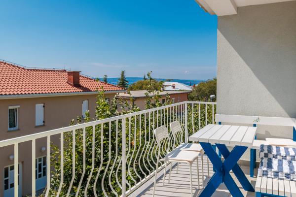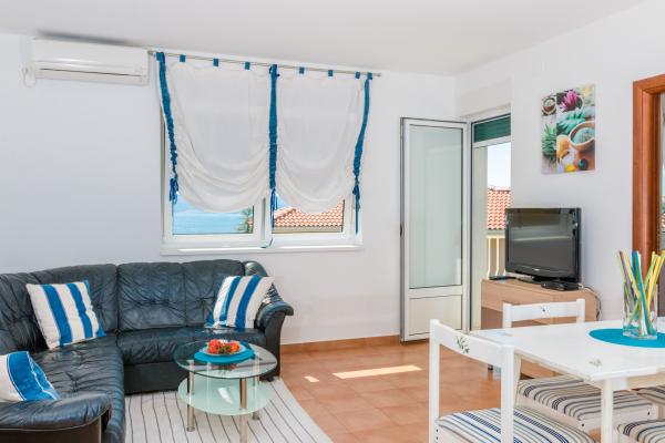Stanovanje s pogledom na morje iz terase, dnevne sobe in spalnice je, v celoti opremljena. Ima dve spalnici, dnevna soba s kuhinjo, kopalnico, teraso, brezplačno parkiranje, brezplačen brezžični internet. Nahaja se na mirni lokaciji, le 10 min. hoje od plaže in centra mesta. Vsi objekti so v 10 do 15 minut hoje in je ni treba uporabljati avto.