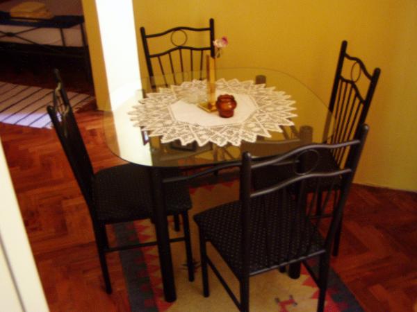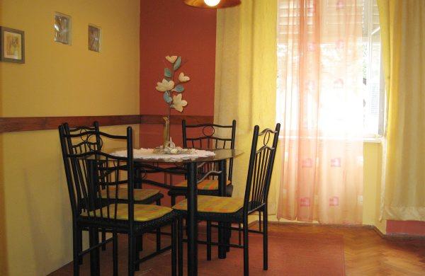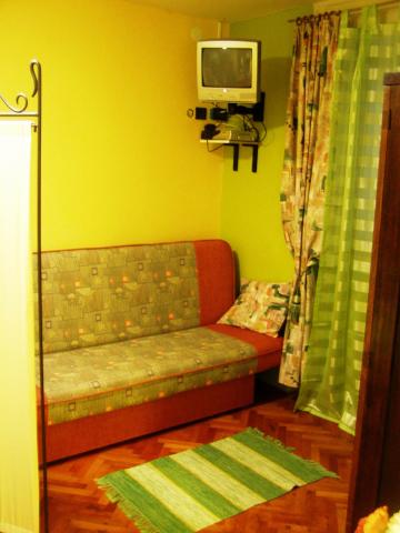 Ambient, lepo urejena kamnita obalna hiša se nahaja na majhnem trgu ob cerkvi Svete Trojice. Oddaljenost od morja in centra mesta 100 m, do prve plaže 250 m. Studio apartma je opremljen z aparati, WI-FI, satelitsko televizijo, stacionarno ali prenosno klimatsko napravo, posteljnino in brisačami (menjava posteljnega perila in brisač enkrat na teden). Parkiranje pred hišo ali na javnem parkirišču z brezplačnim parkirnim listom v celotnem času vašega bivanja. Bližina vseh pomembnih objektov, morje, plaža, zmanjšuje uporabo avtomobilov na minimum. S čudovitim gorskim zaledjem, ustvarjenim za počitnice, rekreacijo, šport, pohodništvo, jadralno padalstvo, gorsko kolesarjenje ali samo foto safari, morda le laziranje, vse odvisno od vaših želja in želenega ritma počitnic. Cena najema je odvisna od velikosti studia, sezone, števila gostov, uporabe klimatske naprave in zneska (od 30-50 evrov) Glej cenik spodaj! Uporaba klimatske naprave - doplačilo 5 evrov na dan na osnovno ceno, navedeno v ceni