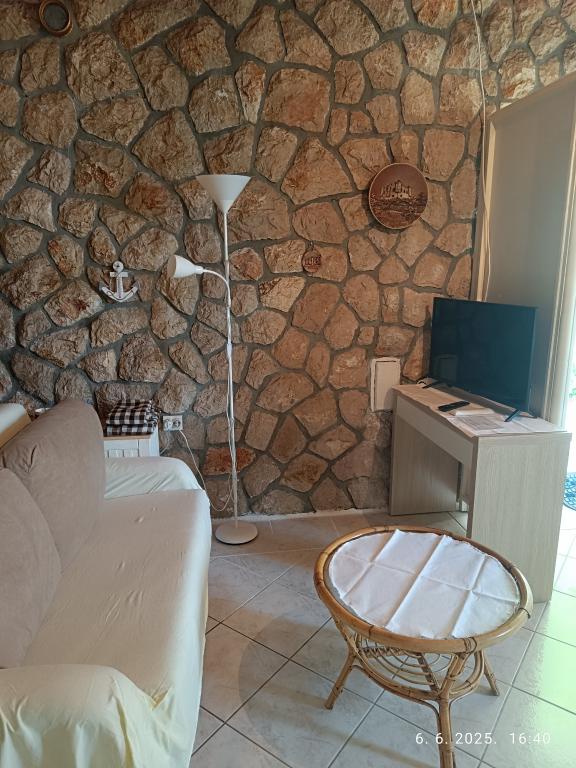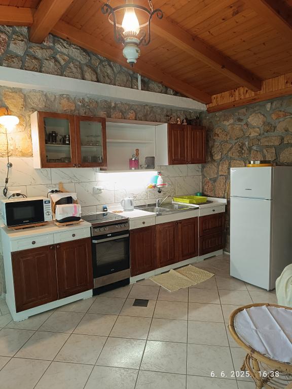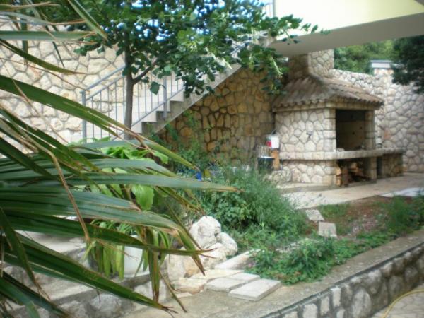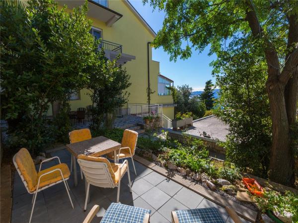 Dva večja dvosobna apartmaja (60 m2) se nahajata v 2. nadstropju hiše s čudovitim pogledom na morje, manjši enosoben apartma (45 m2) pa se nahaja v ločeni kamniti (rustikalni) hiši poleg glavna hiša, s katero si deli vrt in dvorišče. Zagotovljeno brezplačno parkiranje. Žar s teraso na vrtu je skupen vsem gostom. Oddaljenost od morja je cca. 250m navzdol, kjer je sprehajališče z restavracijami in različnimi vrstami plaž. Oddaljenost do centra je cca 1,5 km, po promenadi ob morju.