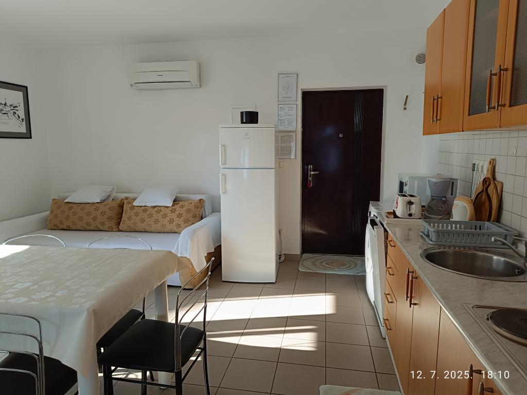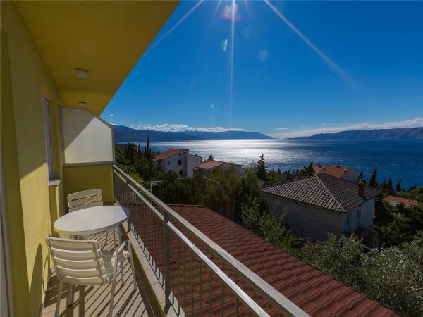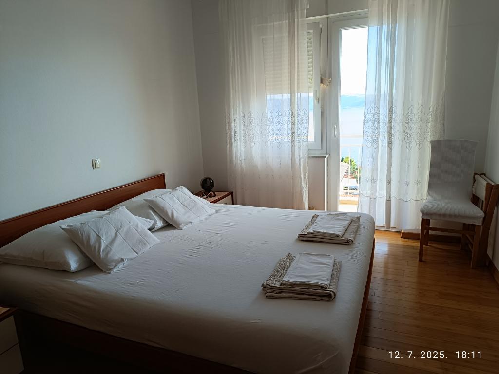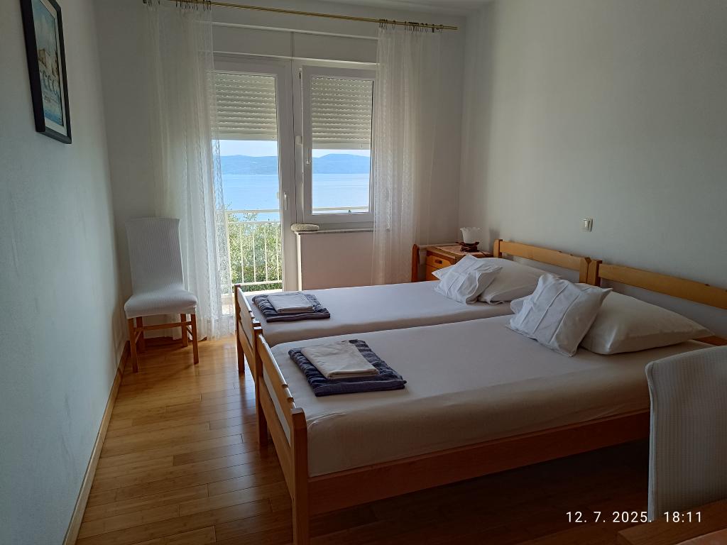 Fantastično stanovanje, 2 veliki spalnici in dnevna soba s kuhinjo. Vse čisto in dišeče. Čudovit pogled z balkonov na Kvarnerski zaliv in otok Krk. Apartma ima vse potrebno, dobro opremljeno kuhinjo, kopalnico s tušem. Zelo prijazni lastniki, ustrežljivi! Lepo darilo za goste v hladilniku. Apartmaji z ločenimi vhodi ne posegajo v zasebno cono lastnikov. Parkiranje na vhodu. Zelo blizu vode. Zelo smo zadovoljni! Lep pozdrav gospe Katarini! PRID