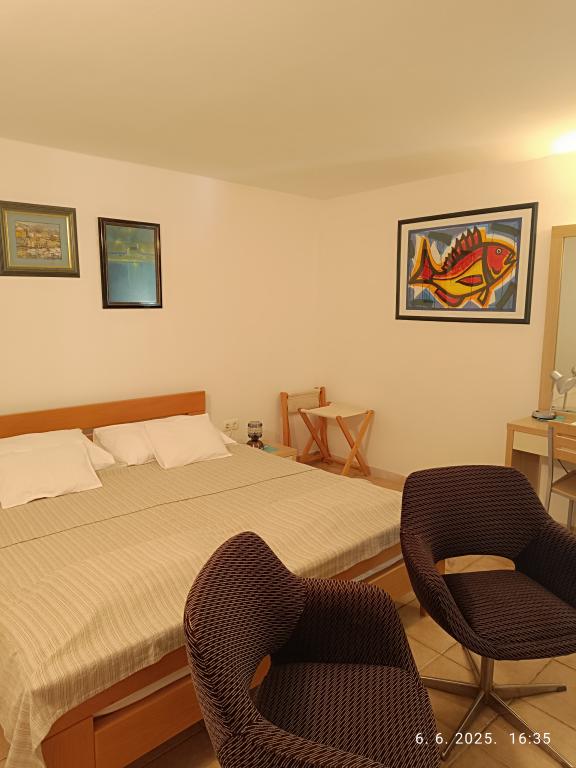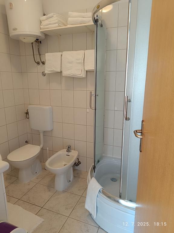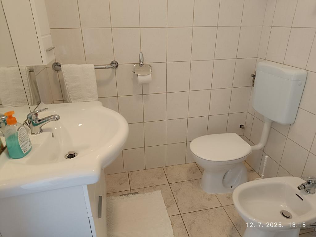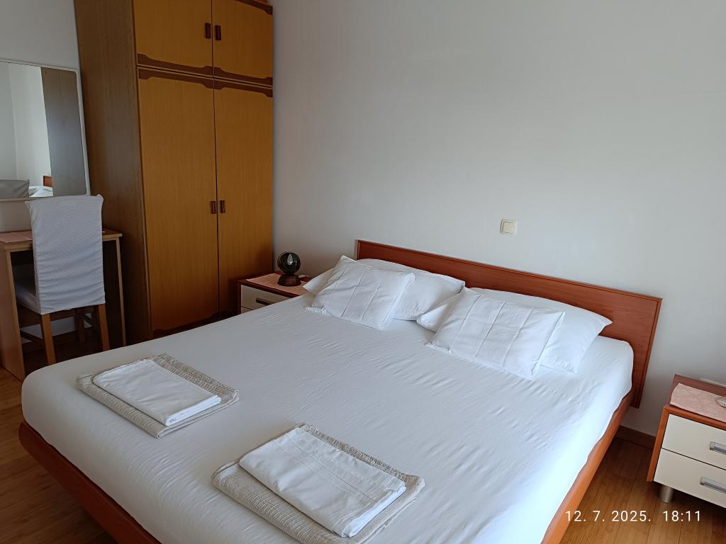 Bili smo na počitnicah s prijatelji in imeli smo dva apartmaja (A4 in A4), enega za nas in enega za naše prijatelje. Bila sta tik drug ob drugem in sta si delila majhen hodnik, iz katerega je mogoče dostopati do obeh apartmajev. Popolnoma priročno! Apartma je bil lepo opremljen, z odličnim razgledom in morjem v neposredni bližini. Gostitelja sta bila neverjetno topla in ustrežljiva. Počutili smo se resnično kot doma! Vsekakor ga priporočam – zagotovo se bomo vrnili! Lep pozdrav, Anna