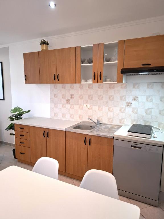 Klimatiziran apartma vključuje zasebni vhod, dnevno sobo s kuhinjo, raztegljiv kavč, 2 ločeni spalnici ter 1 kopalnico s prho in pralnim strojem. Dobro opremljena kuhinja vključuje kuhalno ploščo, hladilnik, napo, pomivalni stroj in celotno kuhinjsko posodo. Apartma ima udobno teraso, TV z ravnim zaslonom in WIFI. Stanovanje ima tudi prostorno parkirišče in mreže proti komarjem kot zaščito pred vsemi vrstami mrčesa. Ker ima hlajenje in ogrevanje, je primerna za najem skozi vse leto. Gostom sta na voljo shramba in žar. Vsak gost ob prihodu prejme v dar steklenico vrhunskega vina.
