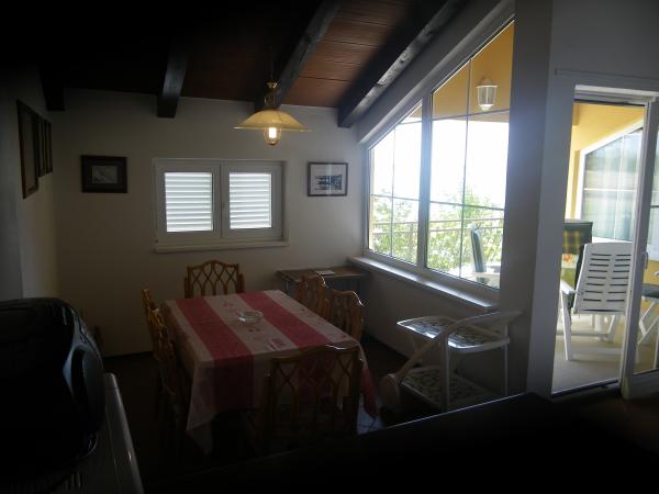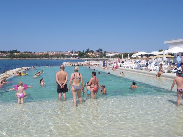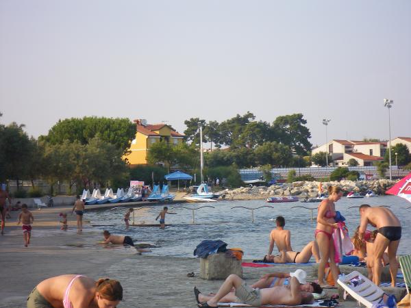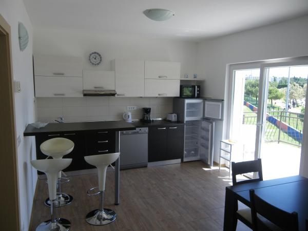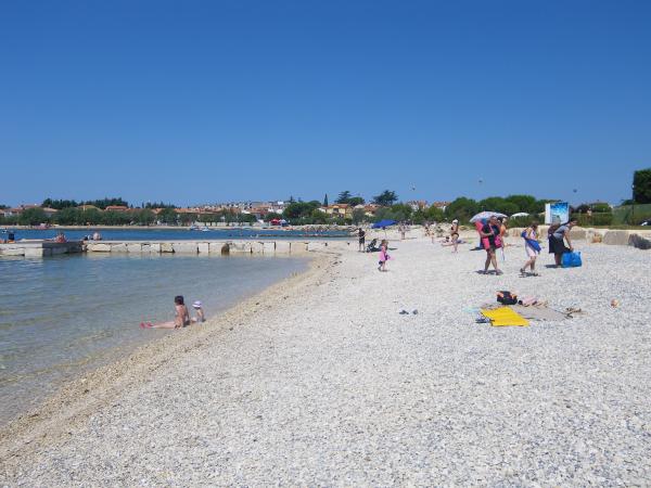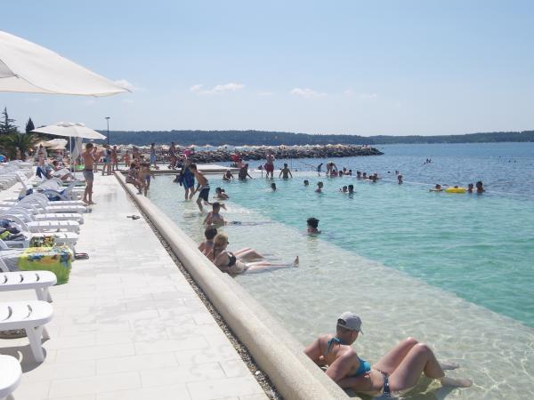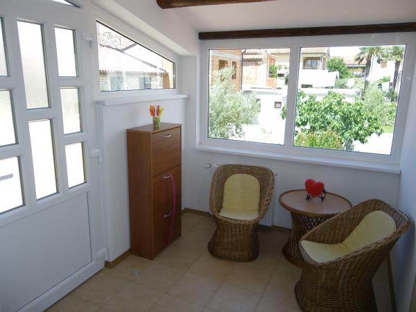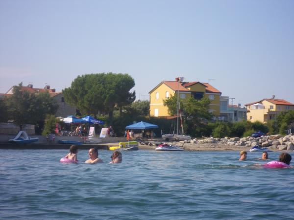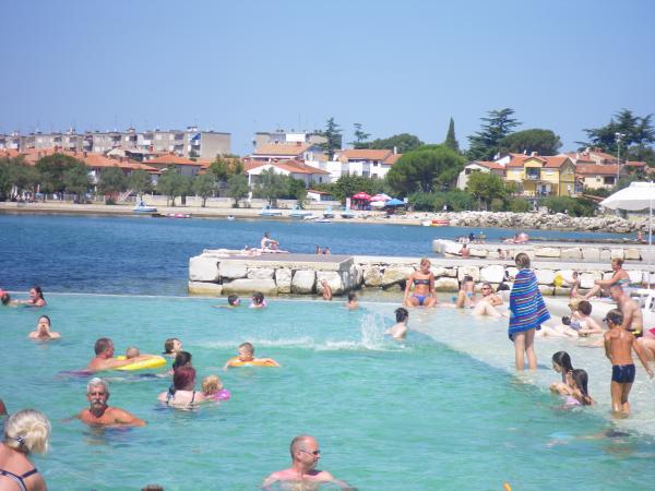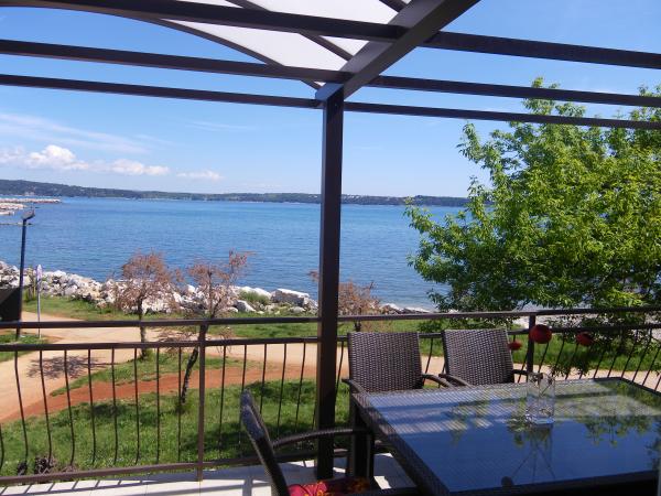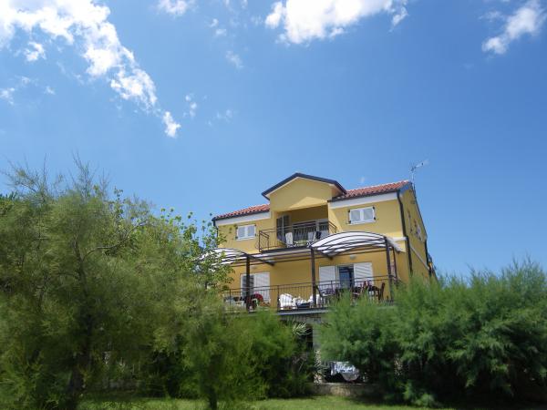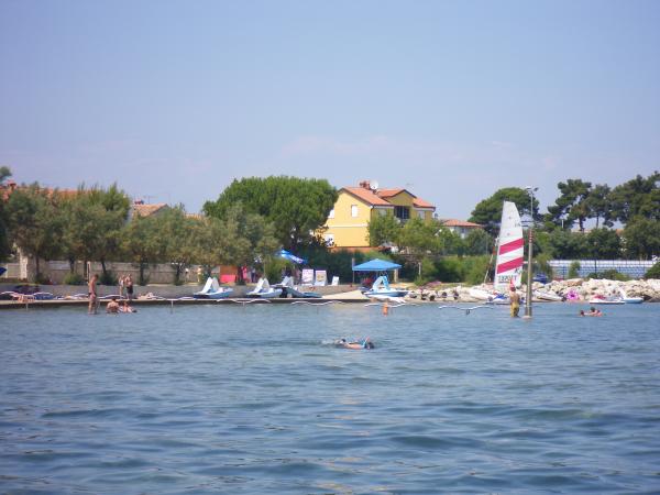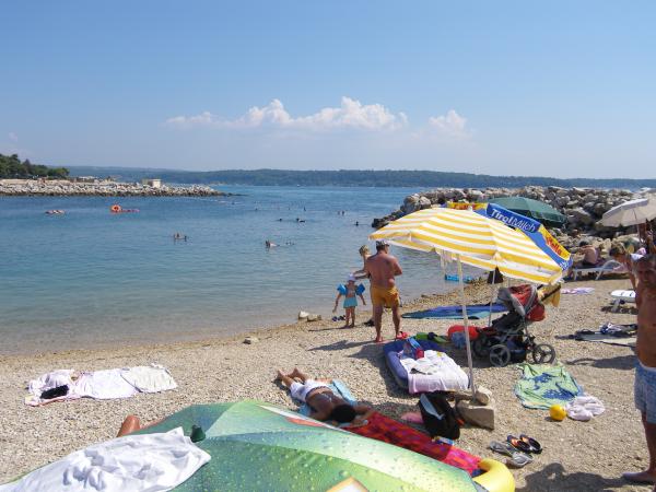 Apartmaji se nahajajo v družinski hiši, obdani z zelenjem in parkirajo neposredno na plaži. Objekt se nahaja v mirnem delu mesta, v bližini centra mesta, restavracije in večerje. Pred objektom so prodnate in betonske plaže, v neposredni bližini pa so na voljo brezplačni bazeni za otroke in odrasle. Parkirišče za vozila in kolesa je na voljo v dvorišču. Športni in rekreacijski center, otroško igrišče, izposoja kanujev, čolni in kolesa so na voljo ves dan. Slavni vodni park Istralandia je oddaljen le 5 km. Apartmaji so popolnoma opremljeni in idealni za družine z otroki ali skupine prijateljev.