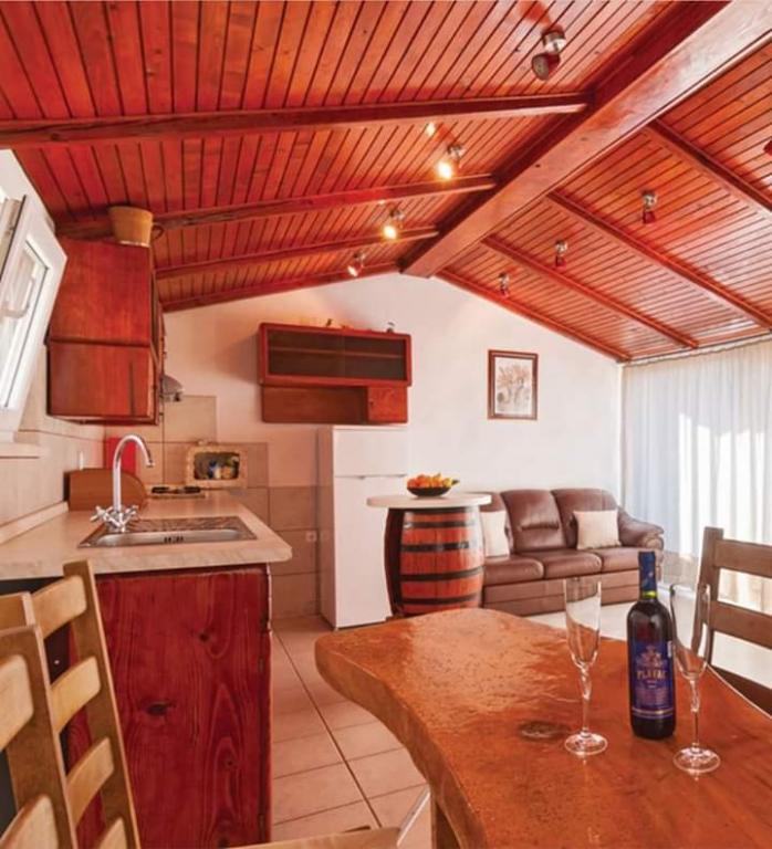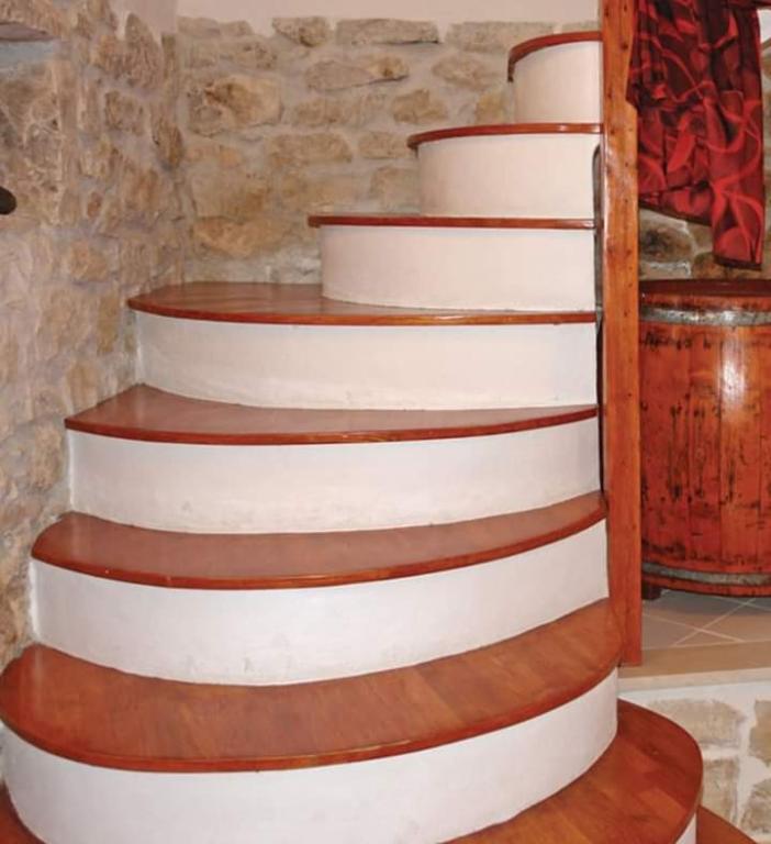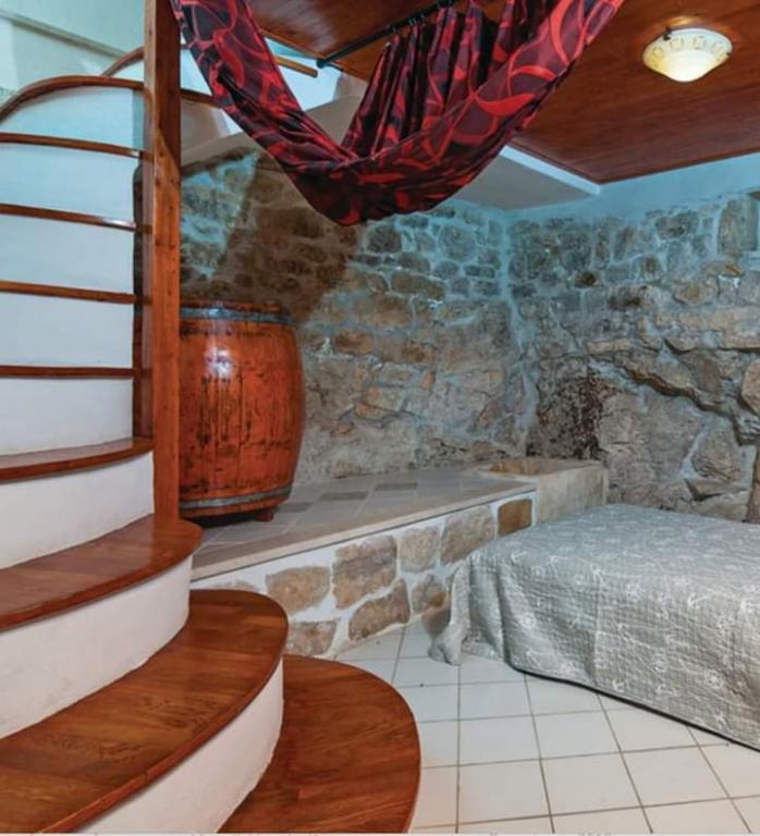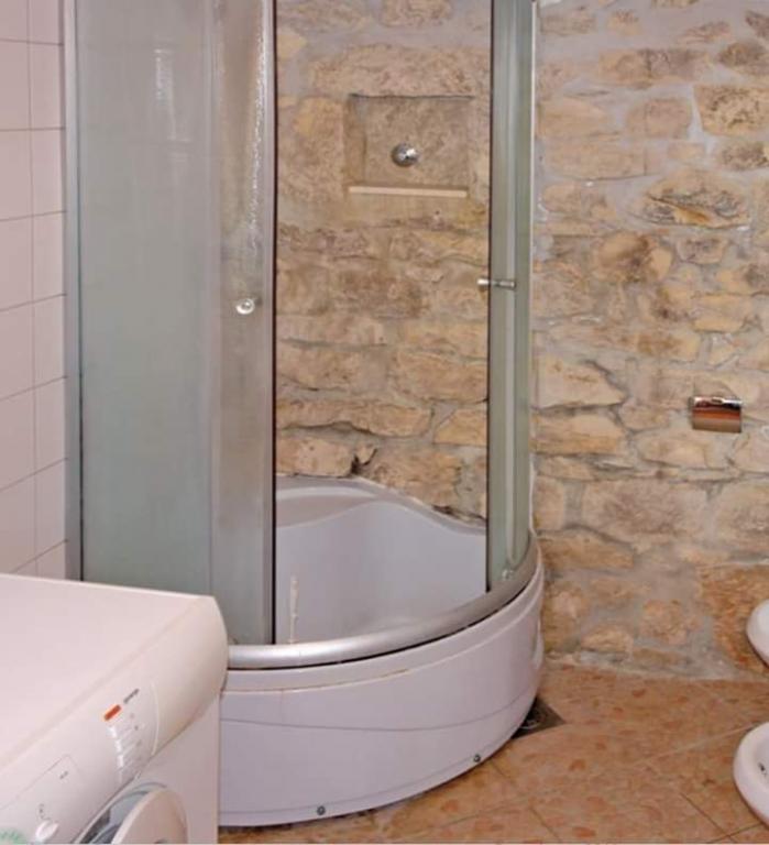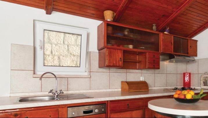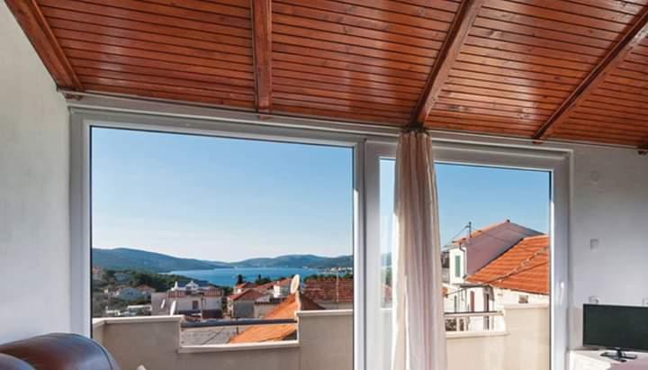 Samostojna hiša v treh nadstropjih. Nahaja se v starem delu Okruga Donji. Iz dnevne sobe se vam odpre čudovit pogled na morje. Hiša je v celoti opremljena (klima, wi-fi, pomivalni stroj ...). Trogir (UNESCO) je oddaljen 8 km, povezan je z avtobusno in čolnsko linijo iz okrožja Donji. Morje je oddaljeno 200 m, plaže pa so raznolike (peščene, betonske in skalnate). Hiša je v 3 nadstropjih. V prvem nadstropju je kopalnica in majhna soba za eno osebo. V drugem nadstropju je glavna spalnica z zakonsko posteljo. V tretjem nadstropju je kuhinja z dnevno sobo. Obstaja tudi kavč postelja.