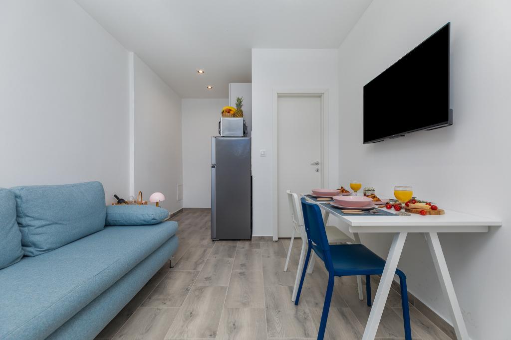Apartma Omiš se nahaja v samem središču mesta, 70 metrov od glavne mestne plaže. Popolnoma nov in moderno opremljen. Vse bistvene ugodnosti se nahajajo znotraj peš cone. Naslov apartmaja: Joke Kneževića 6, Omiš.