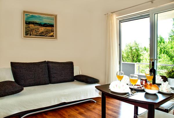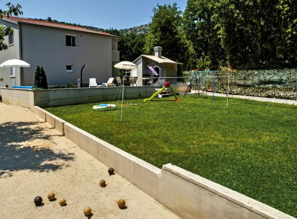 Turistična taksa je vključena v ceno.Naši gostje imajo zasebni bazen, sobo z vadbeno opremo, zunanji, tradicionalni žar, igrišče za bowling in travnik s zamahu. Vključeni so tudi posteljnino in brisače. To je odlična izbira za družine, pustolovce in skupine prijateljev, saj je lokacija v mirnem okolju in je dobro opremljena in ponuja veliko prostora, in je v bližini mesta Omiša (5km), reka Cetiina, kjer se lahko preizkusite v raftingu, žici, soteskanje, brezplačno plezanje ali pa samo uživajo v čudovitem okolju, ki ponuja rečni kanjon. Mesto Split s svojim starim delom, UNESCO Dioklecijanova palača, ki jo vidite, je le 21 kilometrov stran, ali pol ure, to lahko vedno najde nekaj za vsak okus.