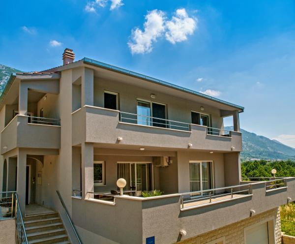 Villa Antoni se nahaja v mirni vasici Gata v naravnem, podeželskem in gorskem območju le 10 minut vožnje do plaže in majhnega mediteranskega mesta Omiša. Lastnina vključuje dva apartmaja, ki jih ponujamo kot eno enoto z zasebnim bazenom. Namestitev je urejeno za največ 10 oseb (6 4) To je moderna hiša, na novo zgrajena in dobro opremljena in apartma je v prvem nadstropju in ednini je na voljo. Za lažje razumevanje prostorskih ureditev we Apartma št 2 in št Apartma 1: Apartma št 2 (4 2 osebi) ima dve spalnici (eno sobo z zakonsko posteljo in ena z 2 ležišči), dnevna soba s kavčem, kuhinjo in kopalnica. Apartma 1 (2 2 osebi) ima eno spalnico z zakonsko posteljo, dnevno sobo s kavčem in kuhinjo in kopalnico. V pritličju je soba z vadbeno opremo, s kopalnico, tudi za goste. Apartmaji imajo dva balkona in teraso, ter zasebni zunanji bazen, ki ima toplotno odejo za ohranitev udobno temperaturo.