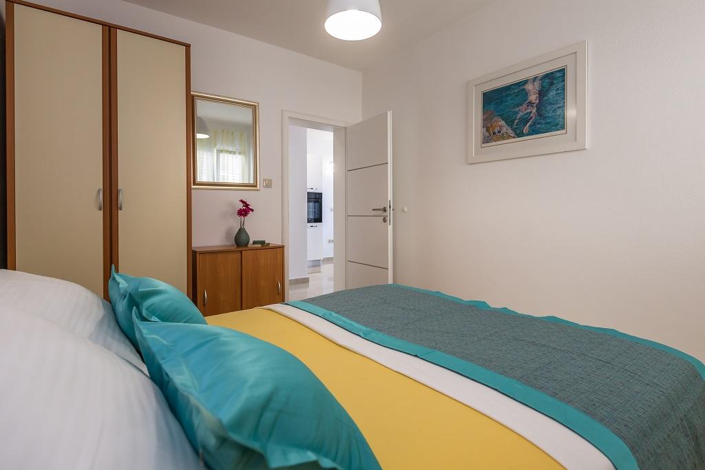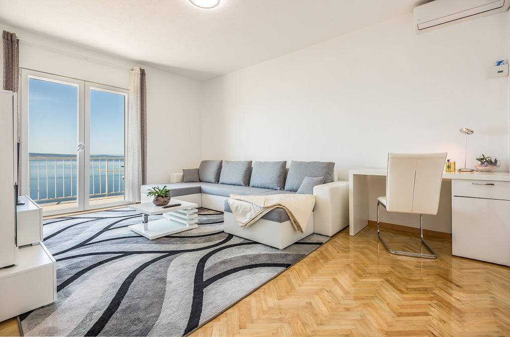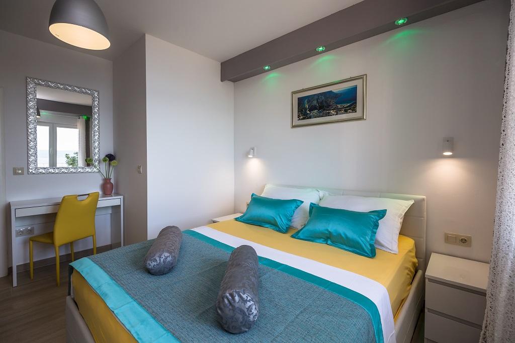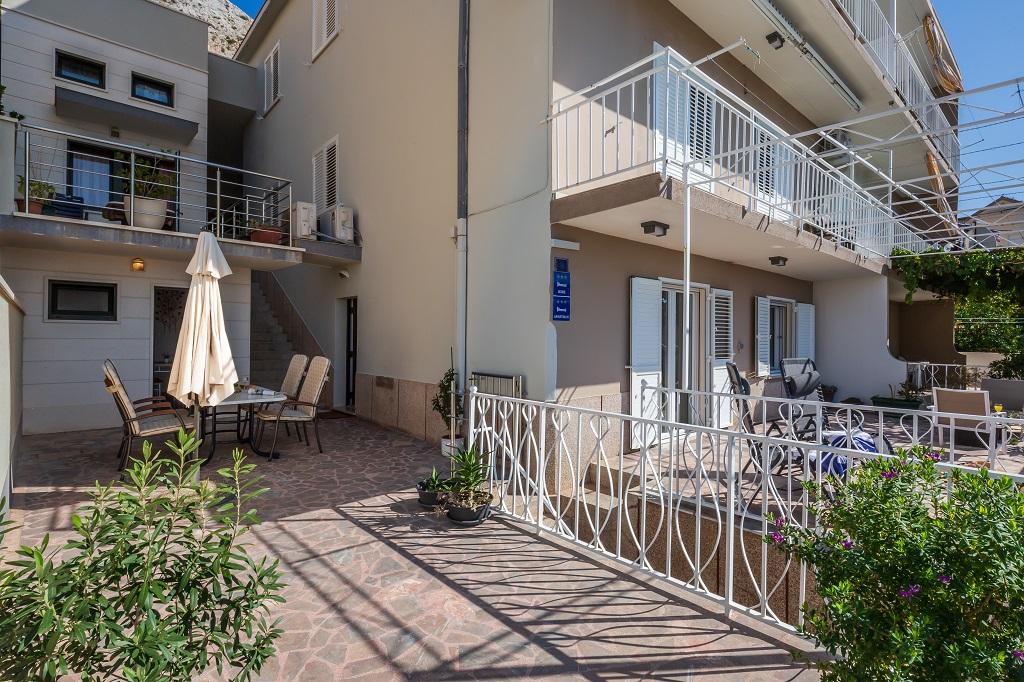 APARTMA SNJEZANA 90 m2 veliko stanovanje. Jedilnica z mizo za 6 oseb. Popolnoma opremljena kuhinja. 2 spalnici in 1 dnevna soba. V dnevni sobi je raztegljiv kavč za 2 osebi. Na voljo so dodatna ležišča. Kopalnica ima tuš, pralni stroj in stranišče. Podnebje. Wifi. SAT-TV. Balkon s pogledom na mesto, morje in otok Brač. Zasebno parkirišče je na voljo za 1 avtomobil. APARTMA DRINE Apartma za 4 osebe. 40 m2 veliko stanovanje ima dve spalnici. SAT-TV. Wifi. Kopalnica s tušem in straniščem. Popolnoma opremljena zunanja kuhinja. 2 zasebni terasi. Terasa 30 m2 z jedilno mizo in zaščito pred soncem, pogled na morje. Zasebno parkirišče. STUDIO TATJANA Velik studio apartma s površino 15 m2 Spalnica z zakonsko posteljo in enojnim ležiščem, mini hladilnik in lastna kopalnica s tušem in straniščem. Wifi. SAT-TV. Popolnoma opremljena skupna kuhinja. 30 m2 terasa z mizo in senco, pogled na morje.