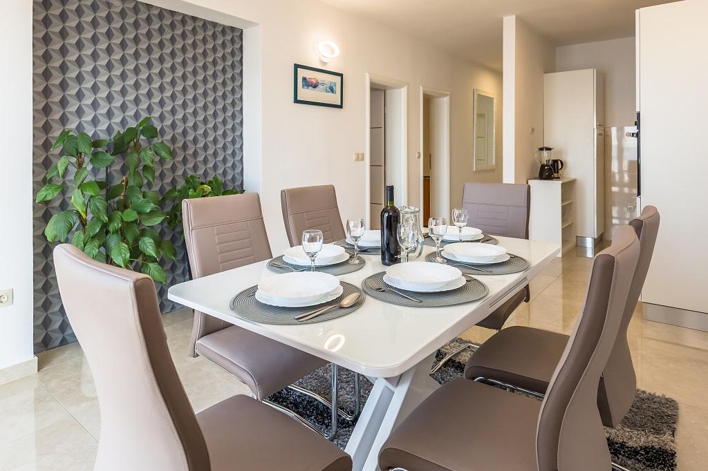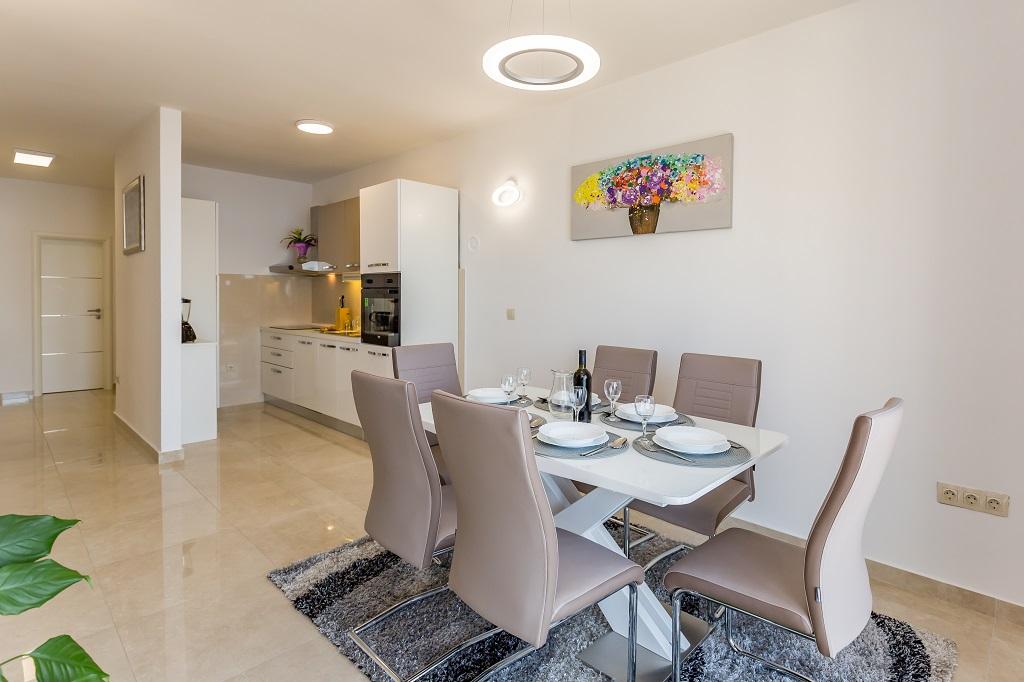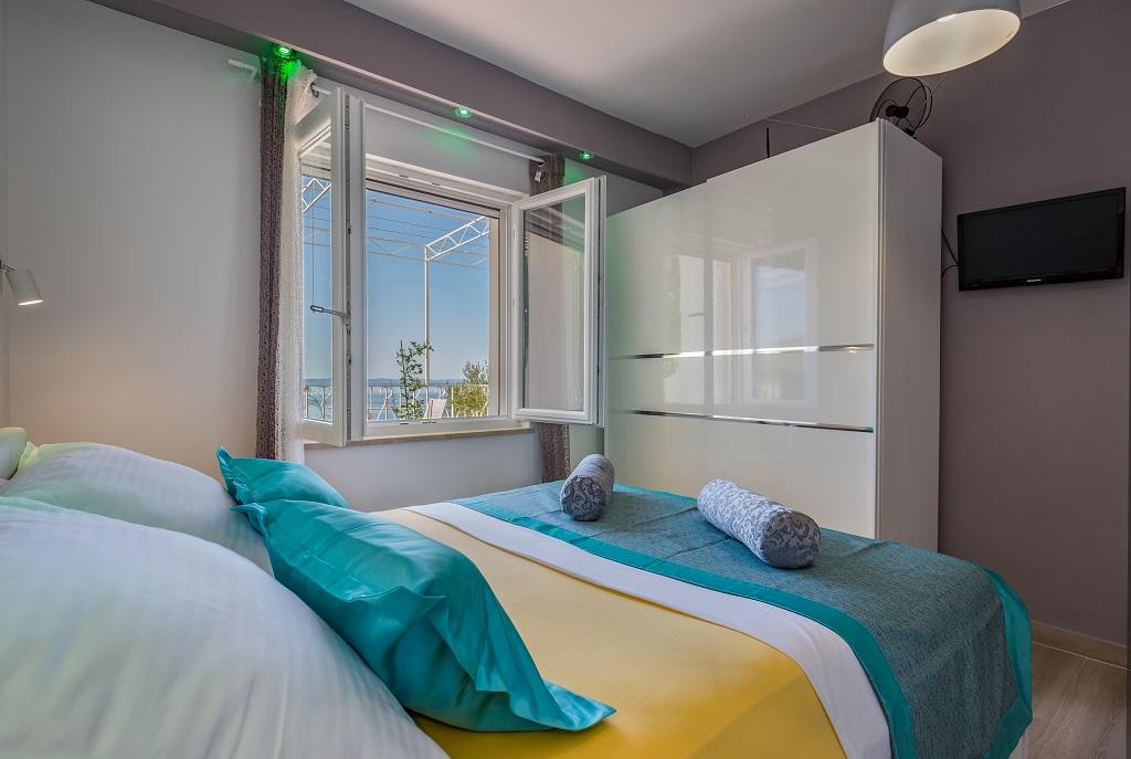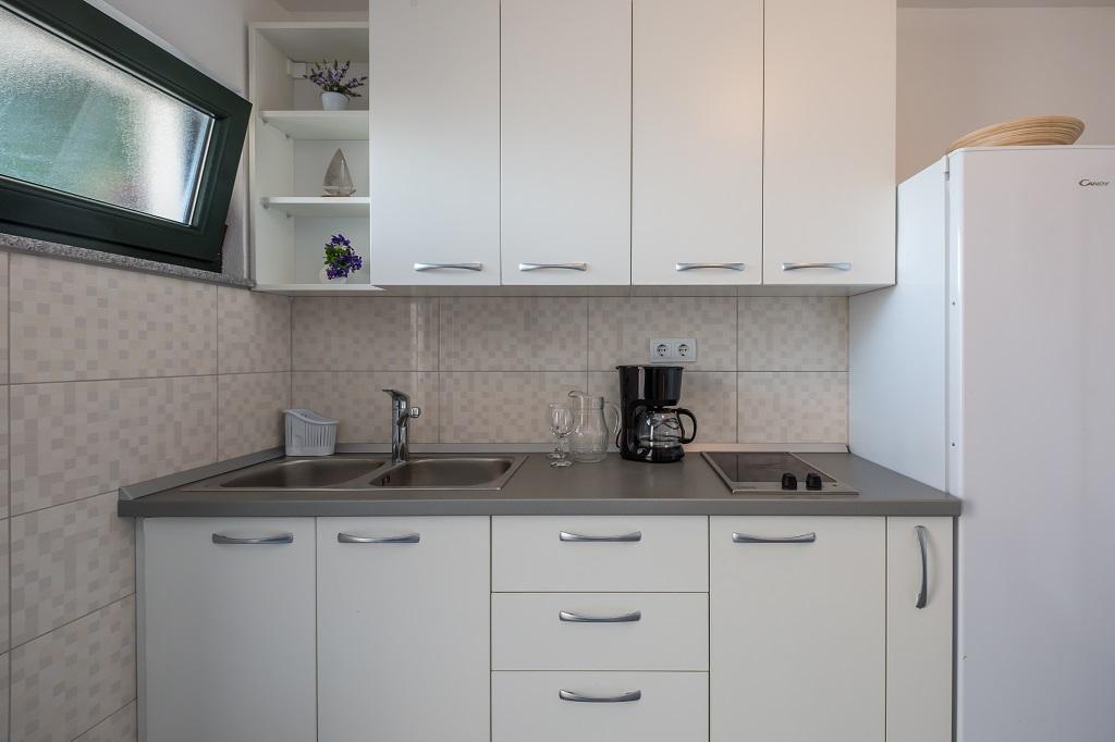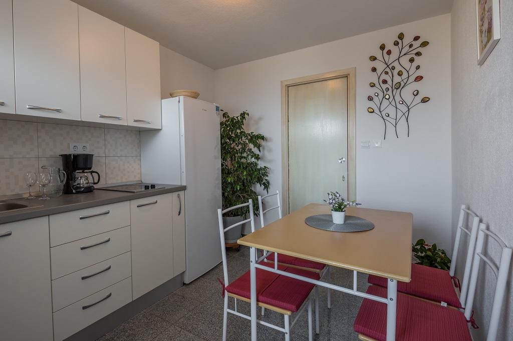 APARTMA SNJEZANA 90 m2 veliko stanovanje. Jedilnica z mizo za 6 oseb. Popolnoma opremljena kuhinja. 2 spalnici in 1 dnevna soba. V dnevni sobi je raztegljiv kavč za 2 osebi. Na voljo so dodatna ležišča. Kopalnica ima tuš, pralni stroj in stranišče. Podnebje. Wifi. SAT-TV. Balkon s pogledom na mesto, morje in otok Brač. Zasebno parkirišče je na voljo za 1 avtomobil. APARTMA DRINE Apartma za 4 osebe. 40 m2 veliko stanovanje ima dve spalnici. SAT-TV. Wifi. Kopalnica s tušem in straniščem. Popolnoma opremljena zunanja kuhinja. 2 zasebni terasi. Terasa 30 m2 z jedilno mizo in zaščito pred soncem, pogled na morje. Zasebno parkirišče. STUDIO TATJANA Velik studio apartma s površino 15 m2 Spalnica z zakonsko posteljo in enojnim ležiščem, mini hladilnik in lastna kopalnica s tušem in straniščem. Wifi. SAT-TV. Popolnoma opremljena skupna kuhinja. 30 m2 terasa z mizo in senco, pogled na morje.