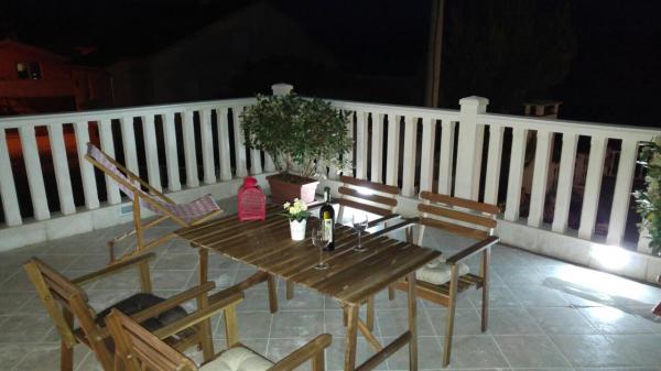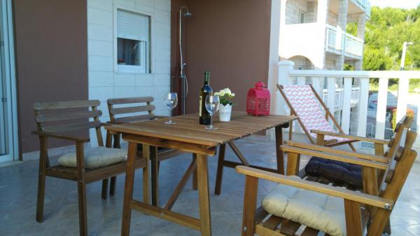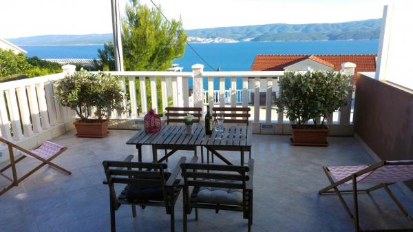 Apartma se nahaja v mirnem kraju. . Apartma je na novo ni zgrajena in lepo opremljeno. Sestavljen je iz cc45m2 v dnevni prostor in lepo teraso cc35m2 s pogledom na morje in otoke. . oddaljena od morja cc 900m od. . tudi Omis cc 5 km