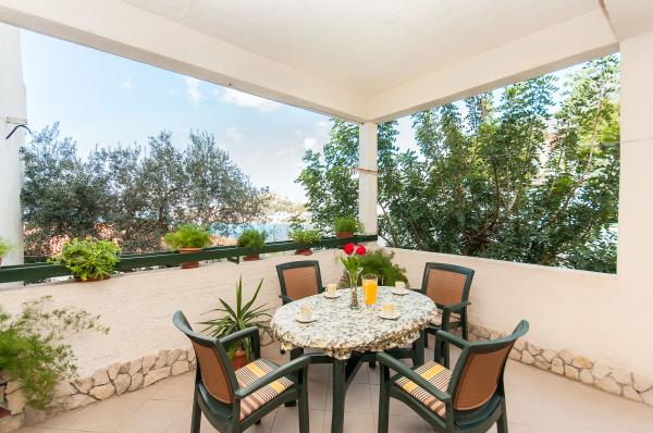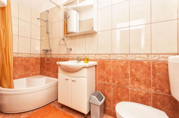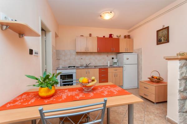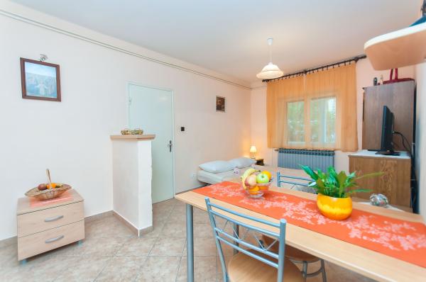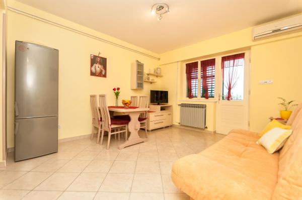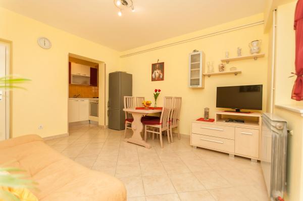 Sodobni apartmaji, kuhinje, vsebuje vse, kar potrebujete, da lahko prejemajo in brisače za tuširanje.U majhen studio apartma lahko fit in dodatno ležišče za otroka do 10 let ali otroka krevetić.Dijete do 3 let starosti je brezplačno in 3 leta je 10 evrov na day.In velikem stanovanju lahko tudi fit in peta oseba na dodatnem ležišču v dnevni sobi, ki se zaračunava 10 EUR na danu.Klima ni vključen in se obračuna dodatnih 7 € na dan, če gost želi.