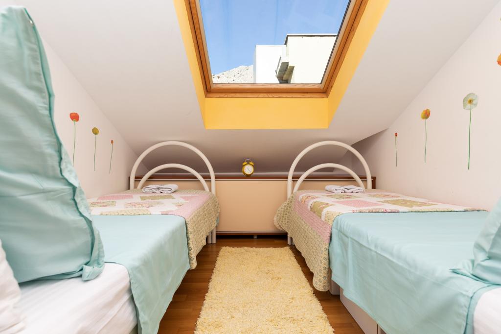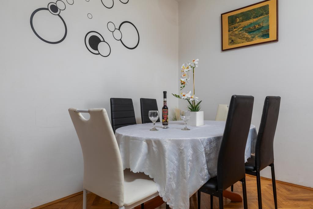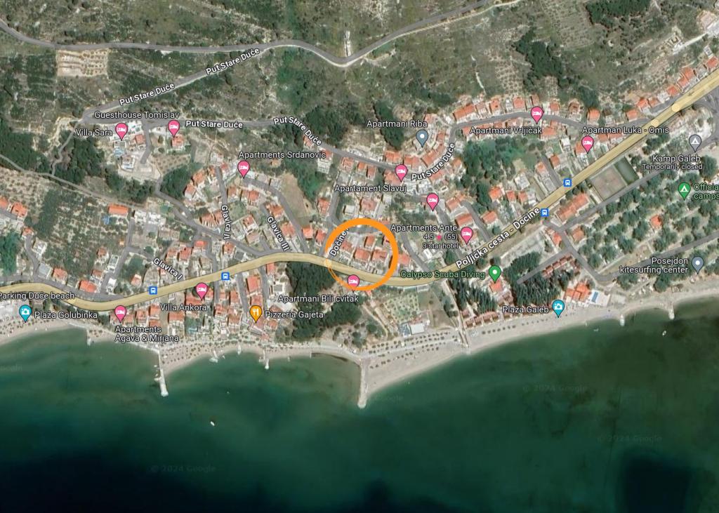 Apartma A7+1 se nahaja v Omišu, na naslovu Četvrt ribnjak 13. Ima 4 spalnice, dnevno sobo, kuhinjo, dve kopalnici s tušem, balkon s čudovitim pogledom na morje. Nahaja se v bližini plaže in centra Omiša. Apartma A5 se nahaja v Omišu, na naslovu Četvrt ribnjak 13, v bližini plaže in centra Omiša. Ima dve spalnici, kuhinjo, kopalnico, dnevno sobo in teraso.