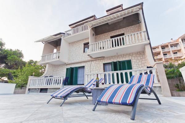 Luksuzni apartmaji za prijetne družinske počitnice. Vsak apartma ima več ločenih sob in kopalnic in ne glede na velikost zagotavlja vsakemu dovolj zasebnosti! Čudovit pogled iz vseh apartmajev na morje in otok Brač. Velika pripravljena terasa, opremljena z velikimi mizami in žarom, bo vaše poletne večere naredila nepozabne. Na voljo imamo tudi zunanjo prho za hiter slani tuš. Le 3 minute hoje do prve plaže in morja. Plaža je primerna za otroke in odrasle, bogata je z dobro razpoloženimi družinami, ki uživajo v soncu in morju.