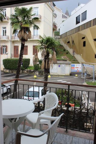 Stanovanje se nahaja v središču Opatije, ob morju in od plaže Slatina je le 30 m. V bližini so številne restavracije, kavarne, banke in podobno. Nepremičnina je 64 m2, tako da je bilo več kot udoben za 4 osebe, in se nahaja za Hotel Galeb, s katero ima isti naslov, ali drug vhod. Vključuje: kuhinja, jedilnica, dnevna soba, kopalnica, spalnica in balkon. Javno parkirišče je le 10m od apartmaja, in vedno ima svobodo mest. Avtobusna postaja je 5 minut hoje. Najbližja letališča: Reka / Krk / in Pula.