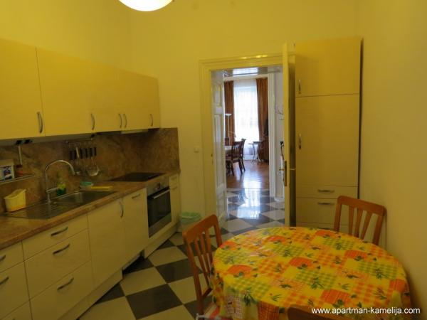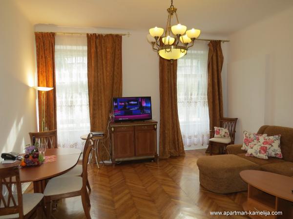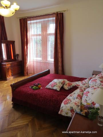 Dragi gostje. Nudimo dobro opremljeno stanovanje (100 m2), ki se nahaja v prvem nadstropju Villa Emilia v mirni ulici v središču Opatije, le 100 metrov od morja. Visoki stropi. Ima lep pogled, balkon s tendo in vrtno garnituro. Zasnovan je tako, da ostanejo 2-6 odraslih z otroki. Stanovanje ima 100 m2, 2 spalnici, dnevna soba, TV (Smart TV) in satelitsko TV, 2 kopalnici (s kadjo in tušem), free WI-FI in interneta. Opremljen je z: pralni stroj, pomivalni stroj, kuhalnik vode, štedilnik, pečica, velik hladilnik z zamrzovalnikom, sodobno kuhinjo, mikrovalovna pečica, sušilnik za lase, likalna set, klima, talno gretje, otroška posteljica, set, posteljnina, brisače, posoda za kuhanje in kuhanje. Pred vilo ima vrt. Apartma je zavarovana varnostna vrata, je prav tako varna. Parkirišče je na dvorišču. Dobrodošli! Samo svoje osebne stvari in prihajajo k nam na počitnice! Ponujamo vam samo tisto, kar smo uživajo sami.