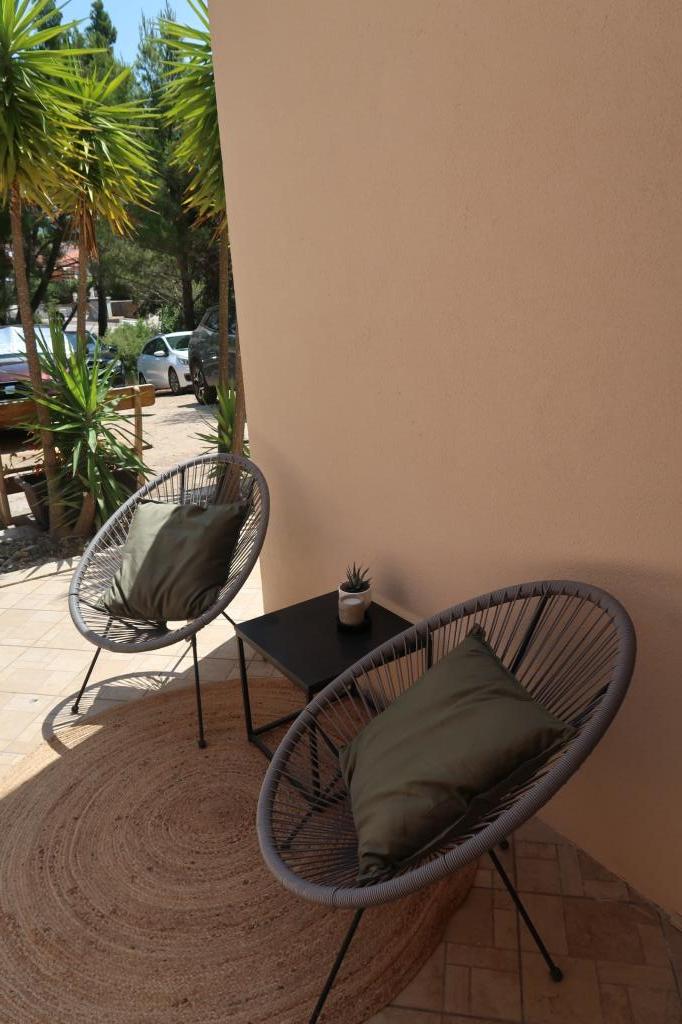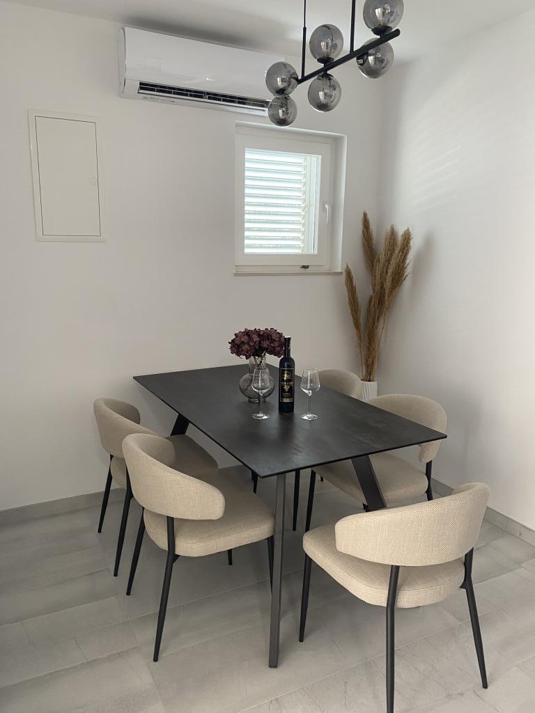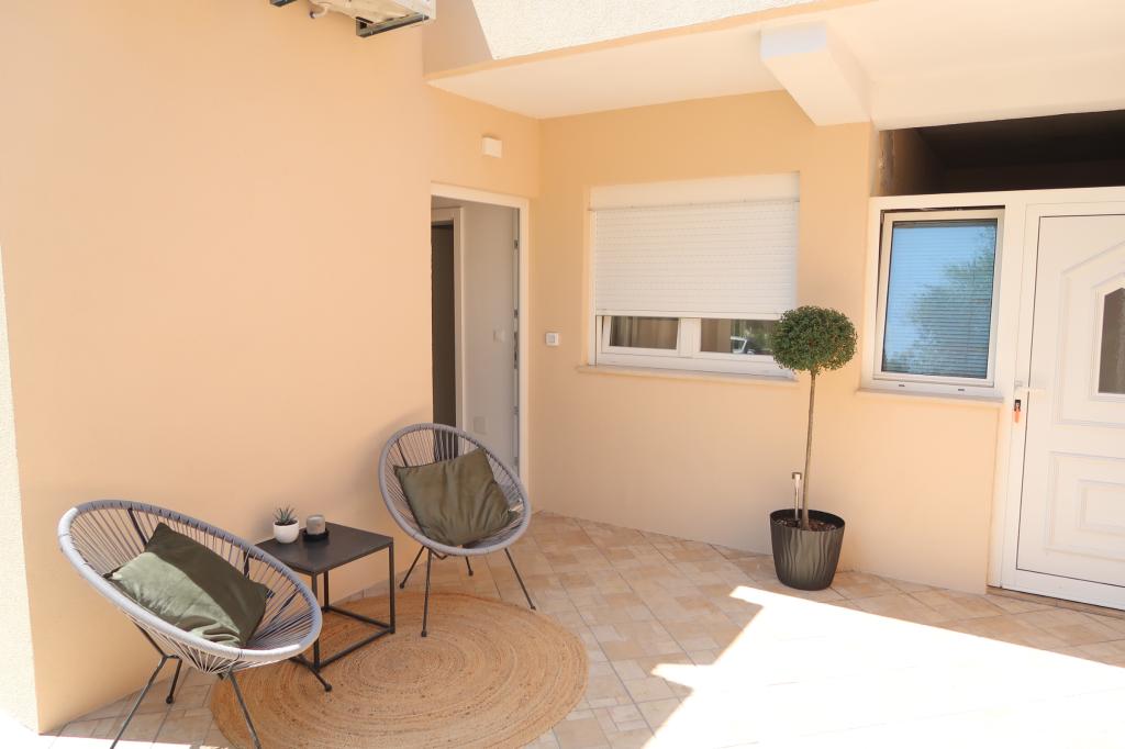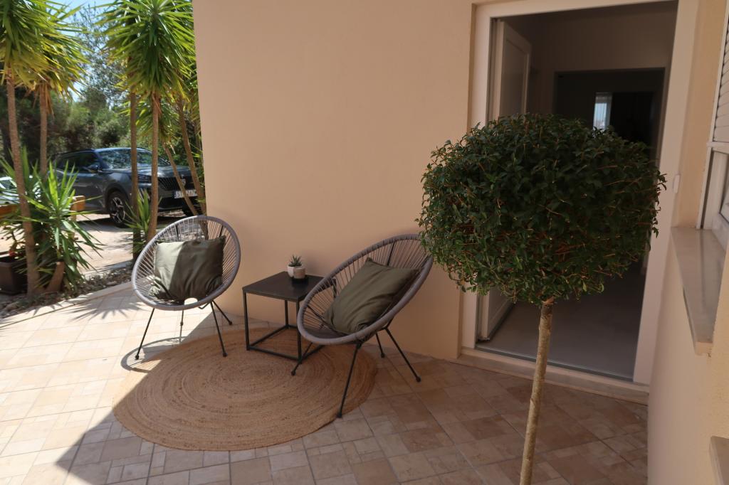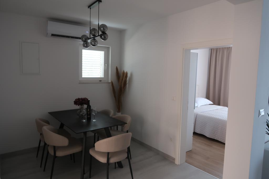 Popolnoma opremljeno in na novo prenovljeno stanovanje. Nahaja se 2 minuti hoje od plaže in 5 minut hoje od centra. Prva trgovina se nahaja 30 m od nepremičnine. V centru so restavracija, kavarna, ribarnica, tržnica, banka, pekarna,... Nastanitev vključuje brezplačno parkiranje in WI-FI. V stavbi je kamin, kjer lahko pečete na žaru. Apartma ima 2 terasi, eno pred vhodnimi vrati z dvema naslanjačema za sprostitev, drugo pa na južni strani s pogledom na morje.