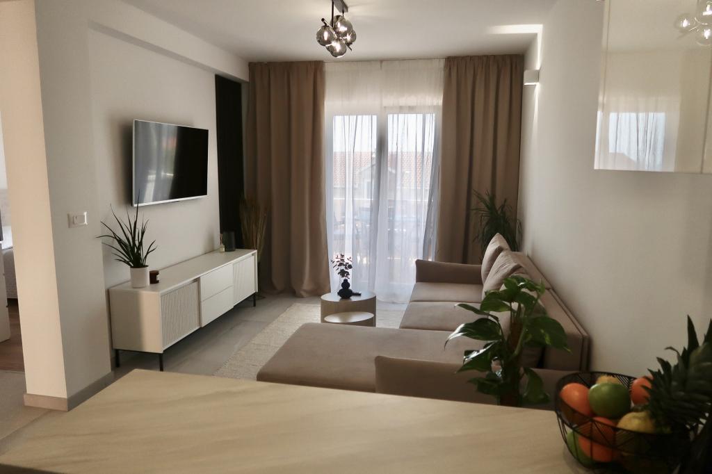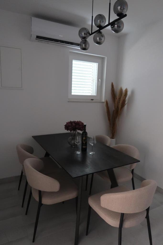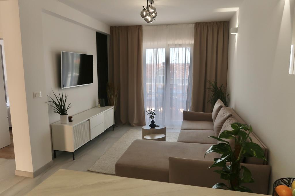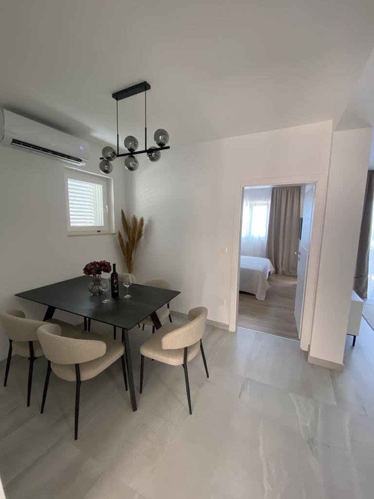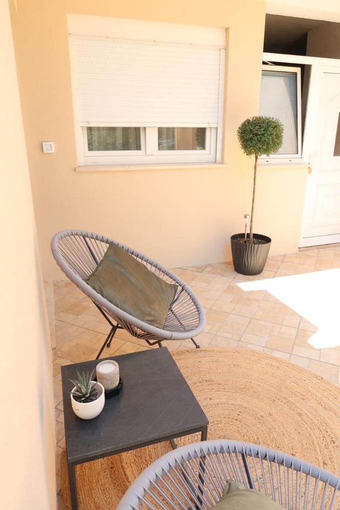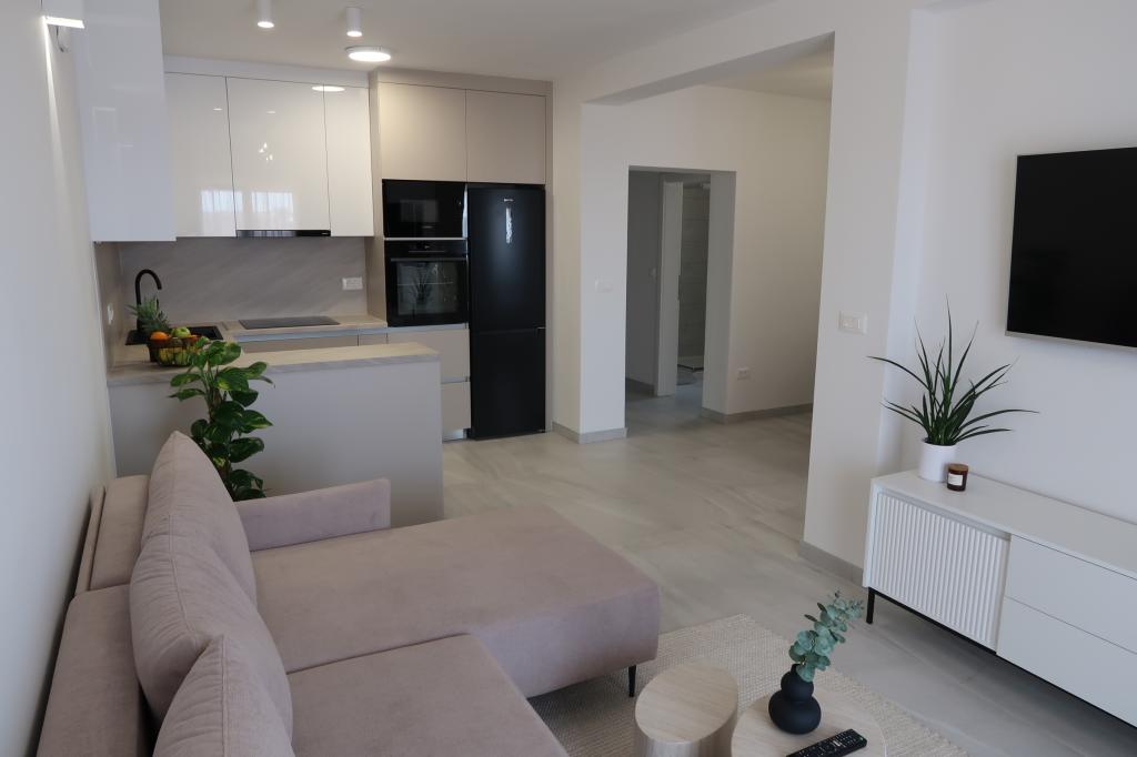 Popolnoma opremljeno in na novo prenovljeno stanovanje. Nahaja se 2 minuti hoje od plaže in 5 minut hoje od centra. Prva trgovina se nahaja 30 m od nepremičnine. V centru so restavracija, kavarna, ribarnica, tržnica, banka, pekarna,... Nastanitev vključuje brezplačno parkiranje in WI-FI. V stavbi je kamin, kjer lahko pečete na žaru. Apartma ima 2 terasi, eno pred vhodnimi vrati z dvema naslanjačema za sprostitev, drugo pa na južni strani s pogledom na morje.