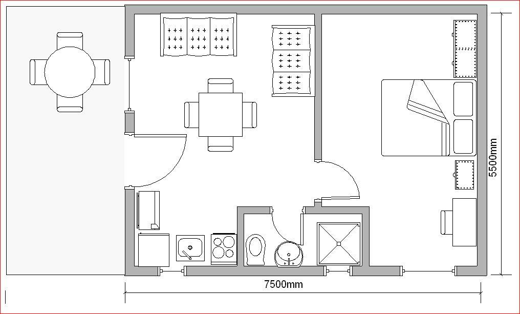 Apartma za dve osebi, možnost dveh dodatnih ležišč (36 m2)