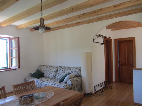 Pred kratkim obnovljeni tradicionalni kamniti hiši v etno vasi Goveđari v osrčju nacionalnega parka. Hiša je sestavljena iz dveh apartmajev, ki imajo ločene vhode in terase ter delujejo samostojno, in jih je mogoče najeti tudi kot celotno hišo za več ljudi. Stanovanje št. 1 je 60m2 s teraso 30m2, popolnoma opremljeno z vsem za prijetno in udobno bivanje 4 osebe (2 osebi na kavču v dnevni sobi). Stanovanje št. 2 je 90m2 s teraso 60m2, z dvema ločenima spalnicama in odprtega žara na terasi. Udoben za 4 osebe. Oba apartmaja sta opremljena z vsem potrebnim za udobno bivanje: štedilnik, pečica, hladilnik, zamrzovalnik, toaster, kuhalnik vode, pralni stroj, ogrevanje, klima, LCD TV, DVD, brezžični dostop do interneta ... Objekt se nahaja 10 minut hoje pot skozi borov gozd Baba hišo in na območju Velikih jezer, pohodništvo in kolesarjenje področja. Vas Goveđari je majhno in slikovito mesto idealno za mirne počitnice.