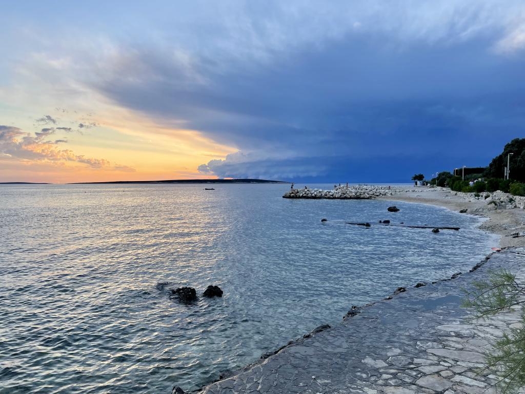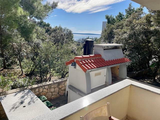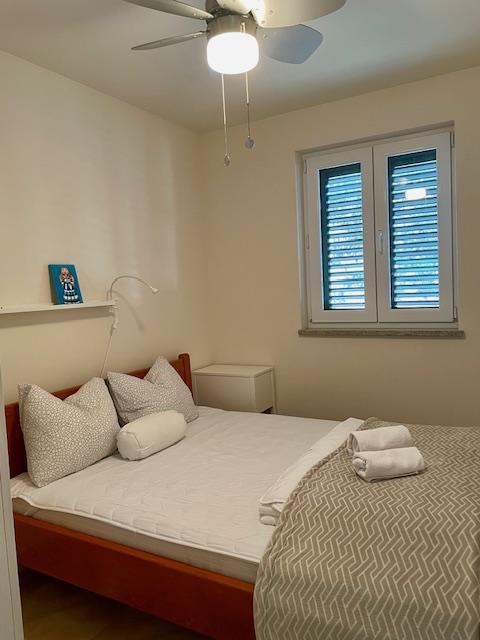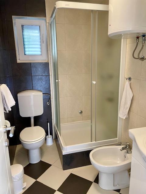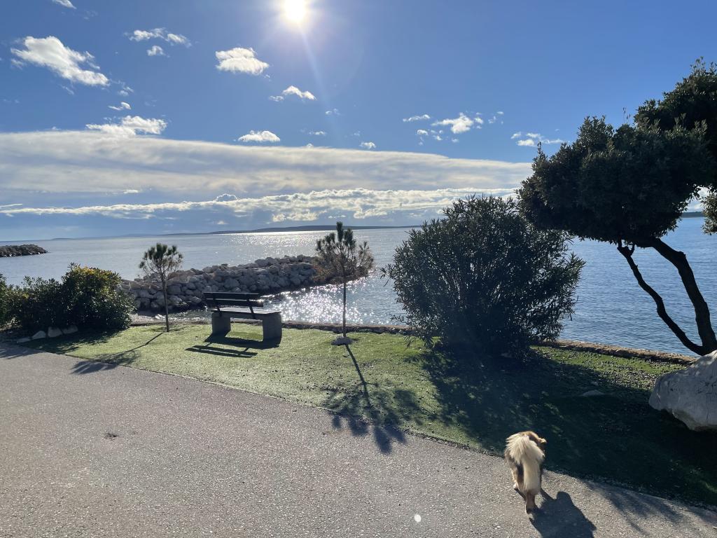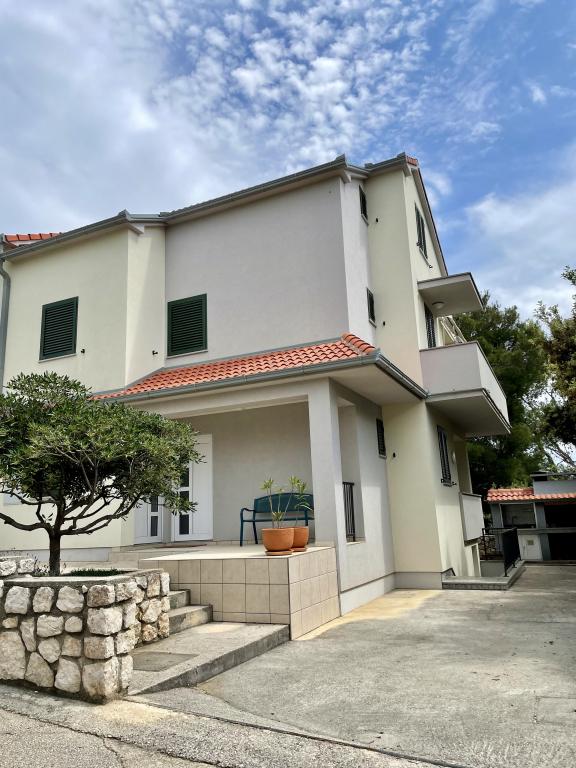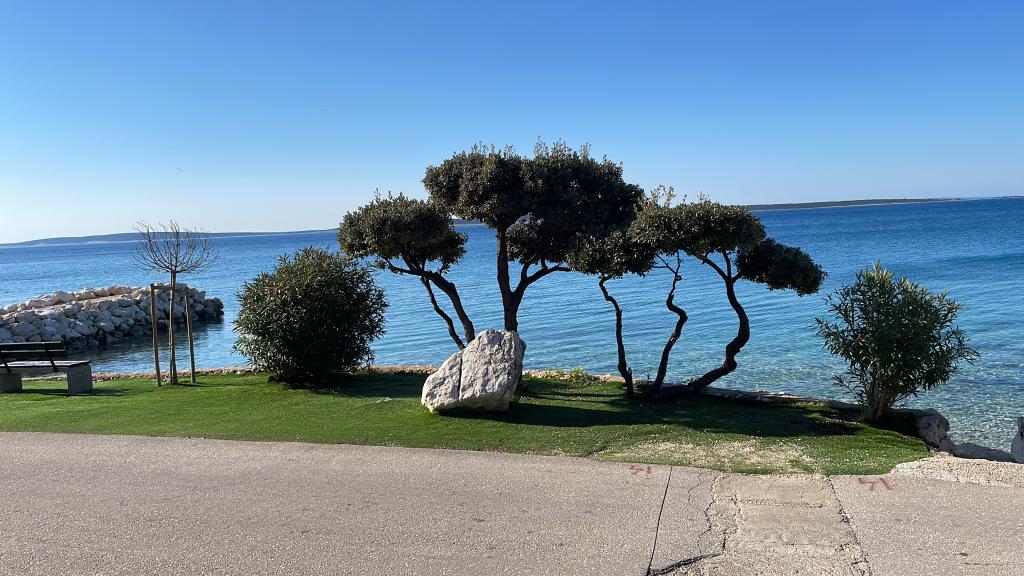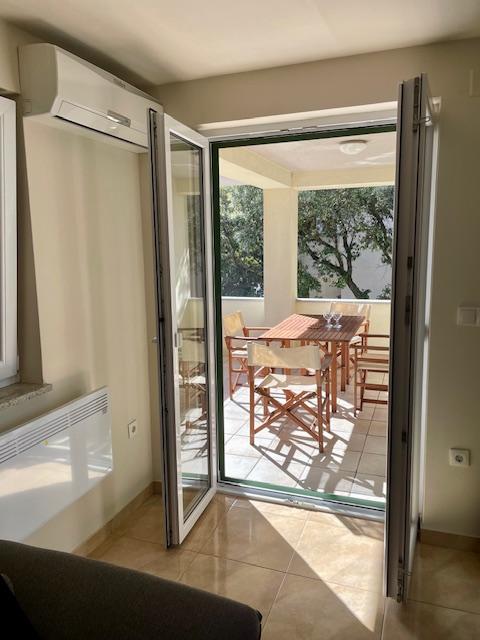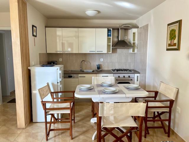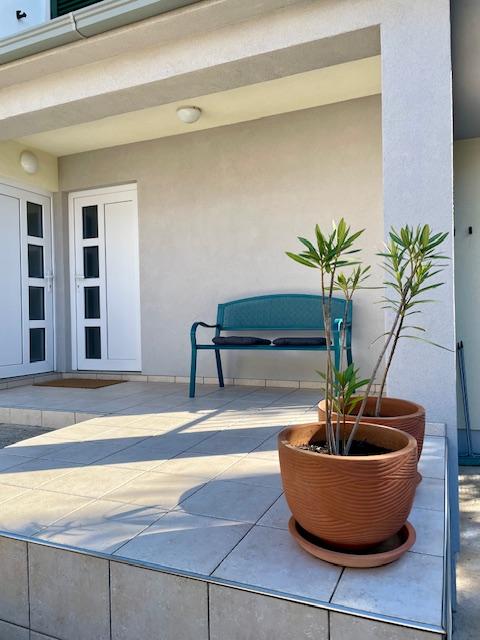 Lep apartma v pritličju hiše s pogledom na morje. Terasa (10m2) je pokrita. Gostom je na voljo dvorišče z veliko mizo za druženje, zidan žar in zunanji tuš. V neposredni bližini so plaža, tržnica, kavarne in restavracije. V času bivanja je na dvorišču hiše zagotovljeno brezplačno parkiranje za en avtomobil. Mesto Mandre je idealno za družinske počitnice s številnimi festivali v poletnih mesecih, dolgo lungo mare promenado in drugo zabavo. Za morebitna vprašanja so vam na voljo lastniki stanovanj, ki živijo v zgornjem nadstropju hiše. Za vse ostale informacije pokličite.