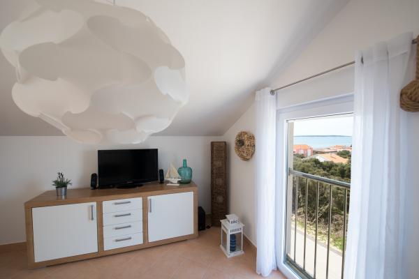 Ta sprostitveni, sodoben apartma z zasebno teraso in pogledom na morje se nahaja na otoku Pag v Mandru in je idealen za družine z otroki in skupinami prijateljev. Terasa z zunanjo jedilnico naredi čudovito sedežno površino in gleda sončni zahod. Apartma Sunny Point nudi popolno udobje, vključno s klimatsko napravo, brezplačnim wifi, vrtno pohištvo, ležalniki, dve prostorni sobi, popolnoma opremljeno kuhinjo in kopalnico. Namestitev ima parkirno mesto. Apartma je od plaže oddaljen 100 metrov.