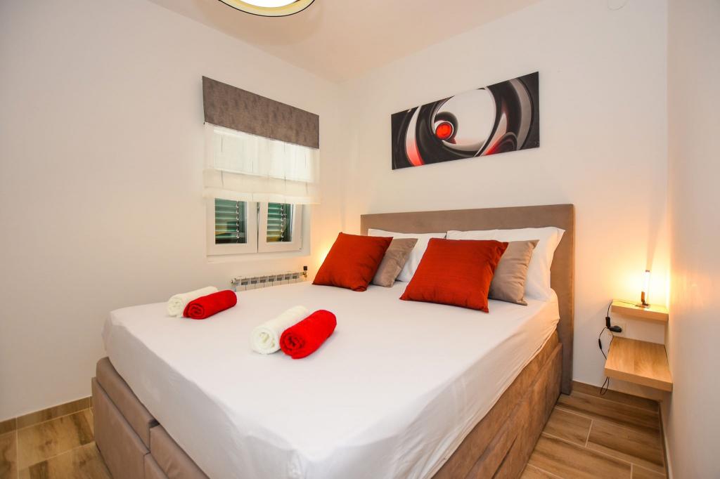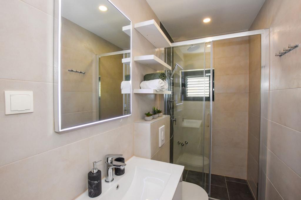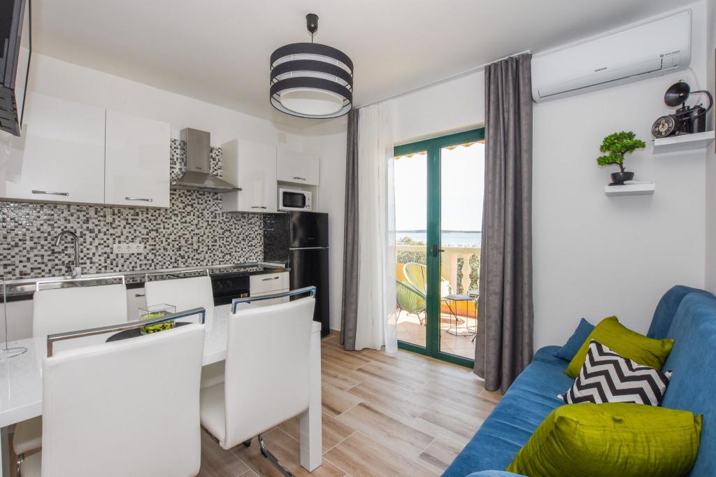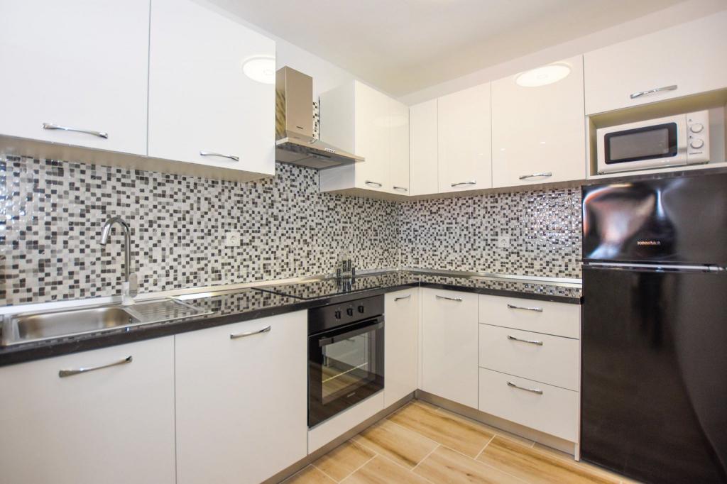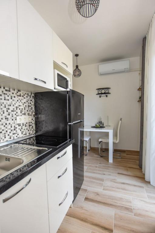 6 NOVIH MODERNO UREJENIH apartmajev, vse enote vključujejo klimatsko napravo, lastno kopalnico s tušem in kuhinjo s pomivalnim strojem, hladilnikom, opekačem kruha in kuhalnikom vode ter skupni prostor za pranje, sušenje in likanje, brezplačen Wi-Fi, led TV, aparat za kavo , otroška posteljica. Brezplačno zasebno parkirišče v krogu 50 metrov. Nekatere enote imajo teraso. V radiju 20 metrov so čudovite plaže, kavarne, otroško igrišče, restavracije, trgovine in igralnica.