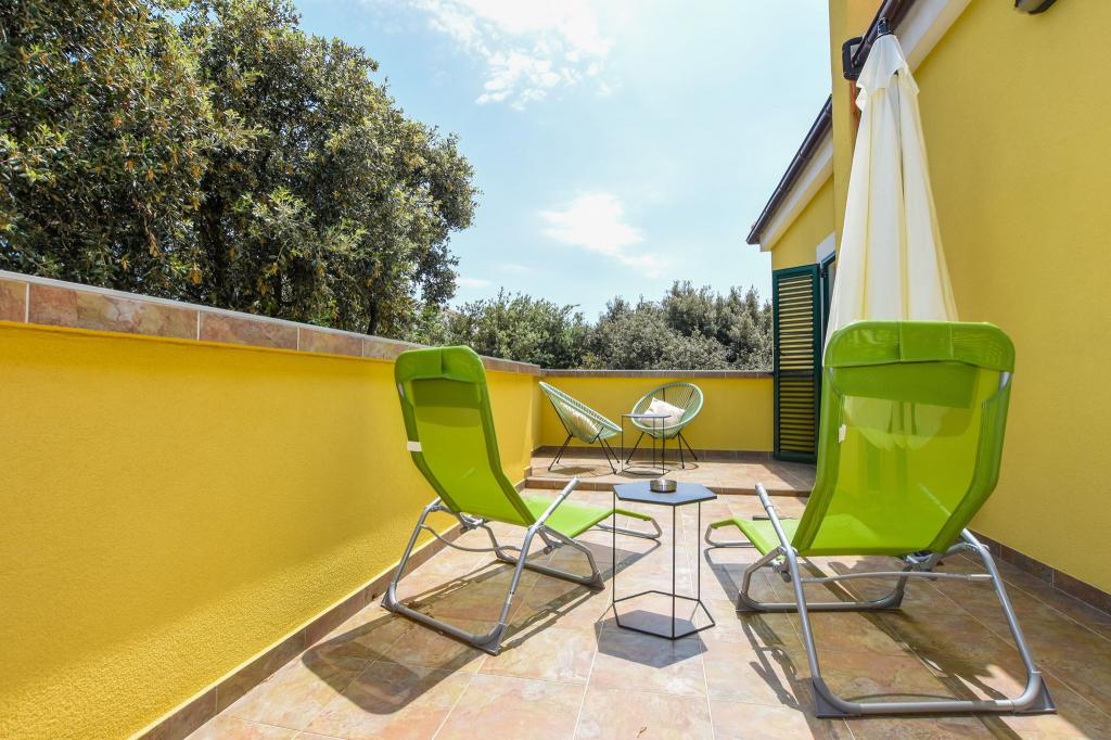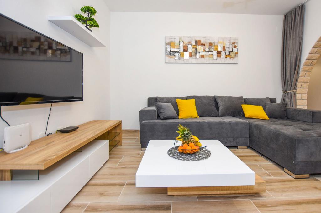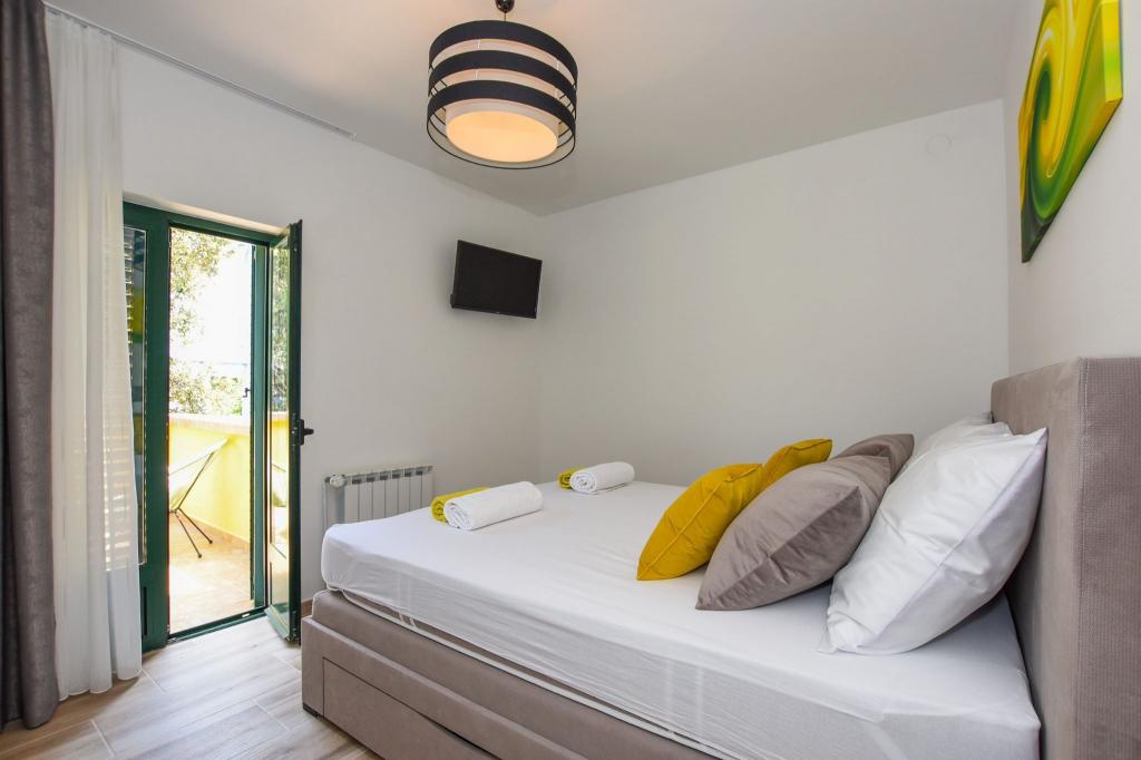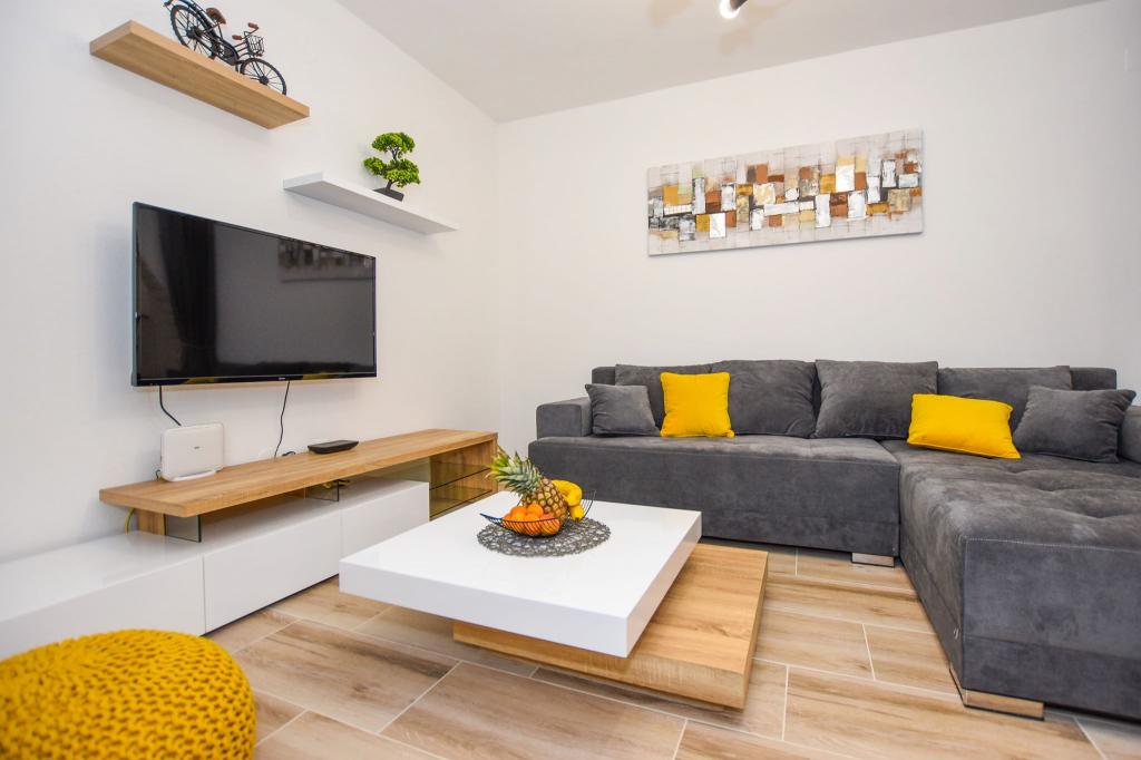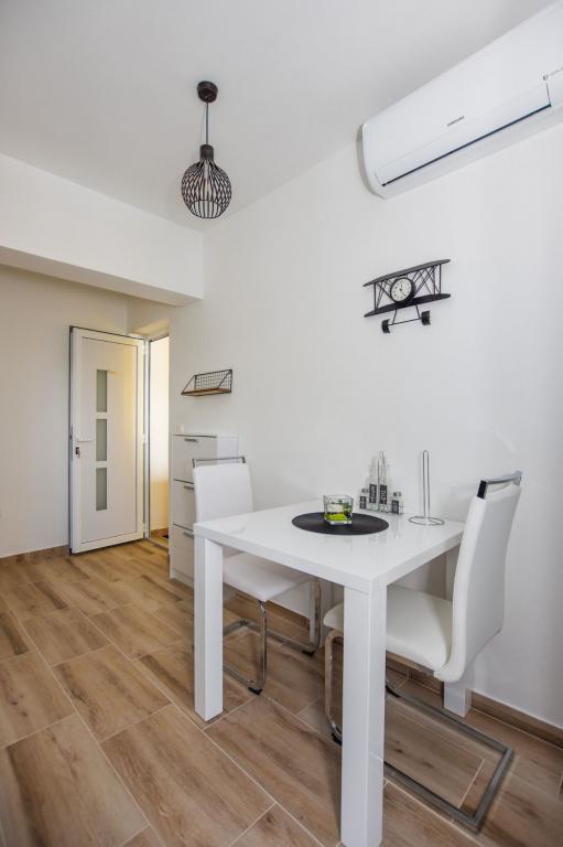 6 NOVIH MODERNO UREJENIH apartmajev, vse enote vključujejo klimatsko napravo, lastno kopalnico s tušem in kuhinjo s pomivalnim strojem, hladilnikom, opekačem kruha in kuhalnikom vode ter skupni prostor za pranje, sušenje in likanje, brezplačen Wi-Fi, led TV, aparat za kavo , otroška posteljica. Brezplačno zasebno parkirišče v krogu 50 metrov. Nekatere enote imajo teraso. V radiju 20 metrov so čudovite plaže, kavarne, otroško igrišče, restavracije, trgovine in igralnica.