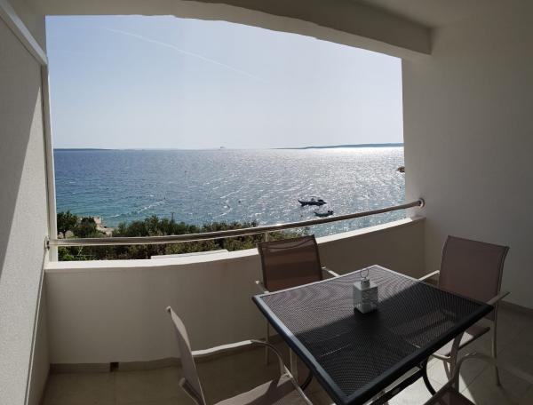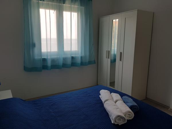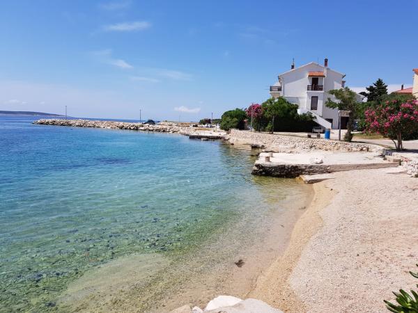 Naši apartmaji se nahajajo ob morju, v centru mesta Mandri na otoku Pagu. Vsi apartmaji se nahajajo v 1. nadstropju naše družinske hiše, tako da ponujajo čudovit pogled na morje. Apartmaji so na novo prenovljeni in opremljeni z internetom, klimo, TV/SAT, popolnoma opremljeno kuhinjo, poleg tega pa lahko na vsa okna skupaj z žaluzijami namestite komarnike, kot zaščito pred komarji. Vsak apartma ima svoje parkirno mesto, vsi gostje pa lahko uporabljajo žar na vrtu. Skozi naše dvorišče greste neposredno na plažo, tako da za prijeten oddih na soncu potrebujete samo brisačo čez ramo! Zelo se veselimo vašega prihoda!