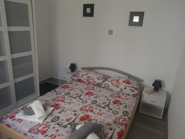 Dragi gosti, dobrodošli v mesto Pag, mesto burno zgodovino čipke in mesta soli in kamna. Apartmaji Pablo se nahaja 10 min. hoje do centra mesta in 5 min. hoje do peščene plaže. Najbližja plaža je v 2 min. hoje, medtem ko je najbližja trgovina je le 20 m. Apartmaji so popolnoma opremljeni in v njej boste našli vse, kar potrebujete, da bo vaše bivanje prijetno in sproščeno. 2 Apartma 2 se nahaja v pritličju in je sestavljen iz opremljeno kuhinjo (hladilnik, pečica, štedilnik, mikrovalovna pečica), kopalnica, spalnica s TV in dnevno sobo z raztegljivim kavčem in televizijo. Na voljo je vrtna garnitura na dvorišču. 4 2 se nahaja v prvem nadstropju in je sestavljen iz popolnoma opremljeno kuhinjo (hladilnik, štedilnik, pečica), kopalnica, 2 spalnici, dnevna soba s TV in dve veliki terasi, od katerih ena s pogledom na morje, Velebit in center mesto. Gostom so na voljo Wi-Fi, parkirišče in žar.