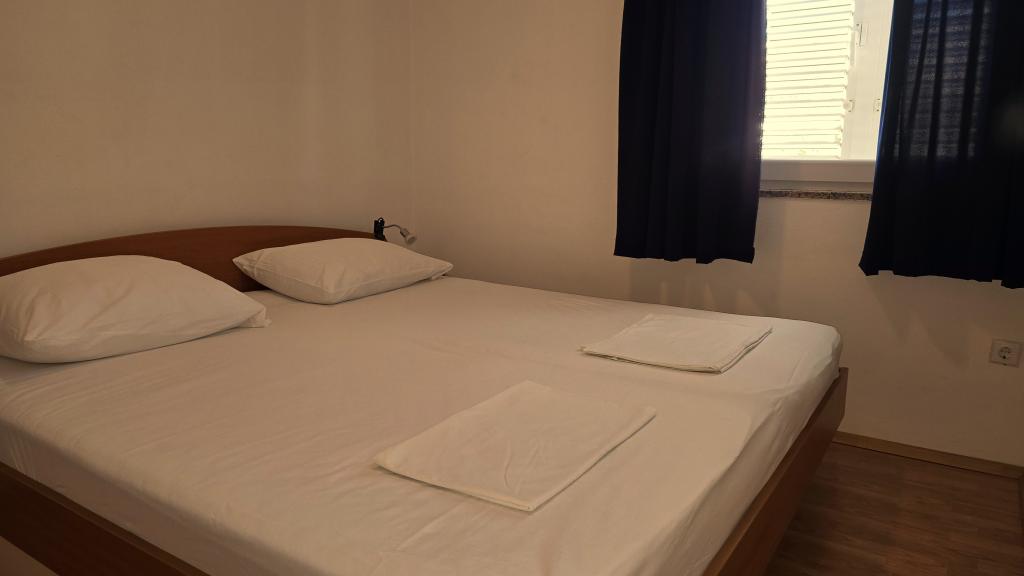 Vukovarska ulica št. 6, 23250 Pag, otok Pag, Hrvaška (HR) GPS koordinate: Latitude: 44.448532, Longitude: 15.053667 • 5 apartmajev za najem: od 25 do 60 m2 • pohištvo po meri, popolnoma opremljeno, klima, LED TV (SAT), brezplačen brezžični internet, brezplačno parkirišče pred hišo; brisače, posteljnina in kuhinjske brisače so vključene v ceno, mirna ulica, 2 minuti do morja ... brezplačno Prednosti: Čeprav je ulica blizu centra Paga, je ulica mirna. Blizu plaže, mestne pošte, trgovine, avtobusne postaje.