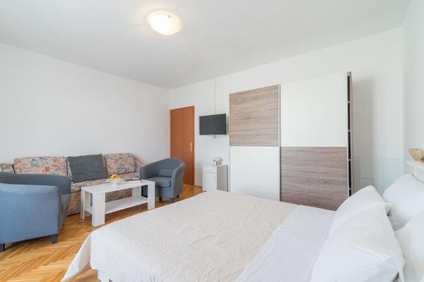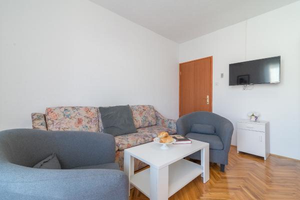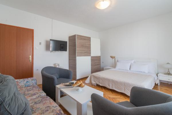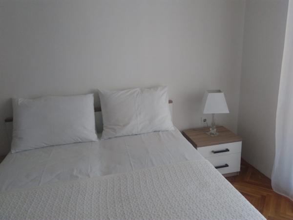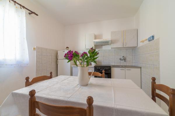 Apartmaji Katica se nahaja v prvem nadstropju hiše 70 metrov od morja, 10 minut hoje od starega mestnega jedra na mirni lokaciji, primerno za družine. To je studio za dve osebi plus dodatno ležišče. Studio ima veliko sobo, kuhinjo in kopalnico. Apartma je za štiri osebe in eno dodatno ležišče. Apartma ima dve spalnici, kuhinjo in kopalnico. Ali imate wi fi, klimatsko napravo in parkirišče v dvorišču. Položaj Novalje je 20 minut in do Zadra 45 minut vožnje z avtomobilom. Vi ste dobrodošli v naši hiši.