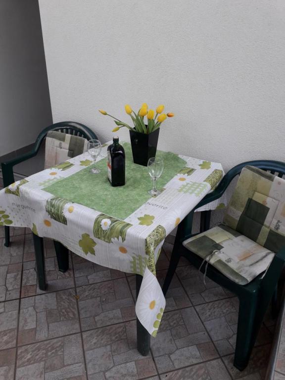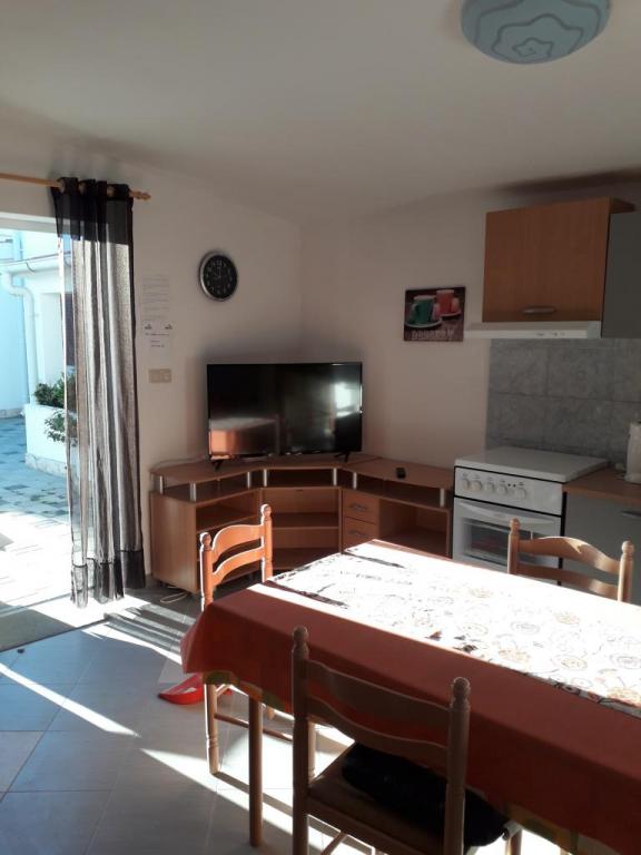Apartmaji se nahajajo v mestu Pag v vasi 30 met. s plaže. V bližini je trgovina z živili. pekarna, restavracija, hotel. Plaža je tik nad spuščajočimi se stopnicami. Peščena in urejena čista in čudovita plaža. Plaže so vse narazen, zato je v bližini velika mestna plaža s ponudbo udobja. Apartmaji so opremljeni s posodo, posteljnino. Vsak apartma ima svoj vhod in svojo teraso. Wifi, TV, klima, žar, parkirišče. Pranje v pralnem stroju je brezplačno, na perilu pa ga lahko uporabljate v perilu. Hišni ljubljenčki so dovoljeni brezplačno. Tuš gel za tuširanje. milo. , sušilec za lase, likalniki, brisače. Dvorišče je ograjeno s kovanim železom. ograjo za varnost otrok. Na terasi je zaželeno kajenje. DOBRODOŠLI