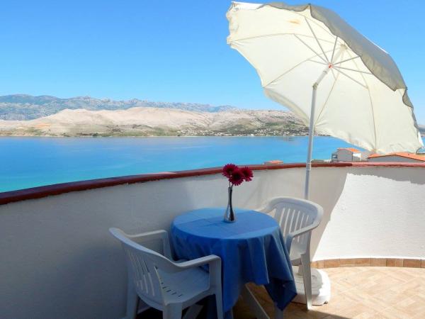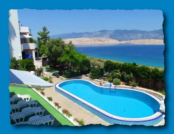 Turistična taksa nije vključena v ceno.Plaže: Prva plaža je oddaljena 200 m. Plaža je prodnata in peščena z viri pitne vode. V naši hiši je veliko plaž, ampak vsi so podobni, kot nalašč za otroke (Pag je 20 km od plaže) ... bazen z vso potrebno opremo (senčniki, ležalniki, mize in stoli na vrtu, gugalnica), dva žara, parkirišče. Opis: Vsi apartmaji so opremljeni s satelitsko televizijo, Wi-Fi, klima, posteljnina, posoda, dežniki in miz na terasi, hladilnik in zamrzovalnik v kuhinji, mikrovalovna pečica, brisače. .