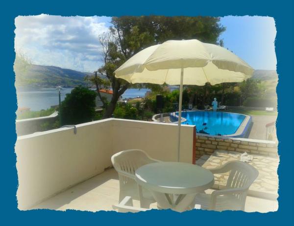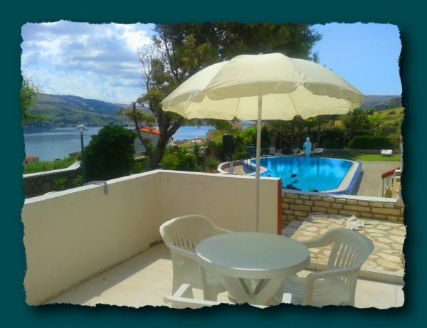 Hiša se nahaja 3 km od centra mesta, na mirni lokaciji, približno 200 m od plaže. Ima lep razgled na zaliv in gore. Narava okoli naše hiše je zelo lepo, tako da se lahko sprehodite in uživajte v svoji lepoti. To je še posebej lepa spomladi in jeseni, če želite, da se sprostite in počitek od vsakdanjega življenja. Vsi apartmaji imajo pogled na morje. Vrt je velik z veliko cvetja in veliko prostora za zabavo in sprostitev, bazen na vrtu s tušem, mize in stoli, dežniki, veliko parkirišče z dovolj prostora za vse, gugalnice za otroke ...