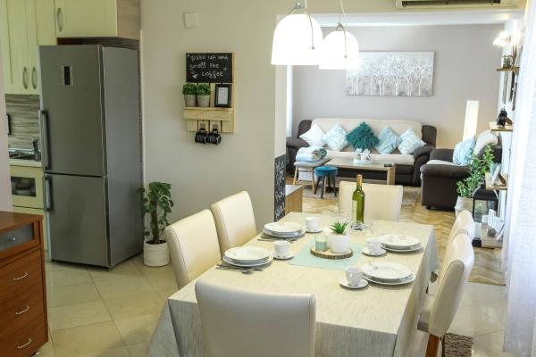 Dobrodošli na naši prostoren, je na novo obnovljeno stanovanje se nahaja na idealni lokaciji v bližini vse dobrine, ampak v mirnem okolju, ki bo vaše počitnice nepozabne. Zaprite destinacije - Zadar, Pulj, Šibenik, Vransko Naravni park jezero, Narodnega parka Kornati, Krka, Plitvička jezera, ... so tisto majhno mesto Pakoštane privlačno destinacijo za družinski turizem. Naša nastanitev obsega: dve spalnici, dnevno sobo, kuhinjo, jedilnico, kopalnico in prostorno teraso.