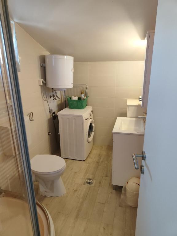 Apartma je na novo opremljen v mirnem predelu Pakoštana, le 10 minut hoje od morja in 5 minut od vseh pomembnih objektov (bankomat, trgovina, pošta, zdravnik...). V apartmaju imate možnost uporabe varovanega parkirnega mesta, zunanjega žara ter tuša in stranišča (s pralnim in sušilnim strojem).