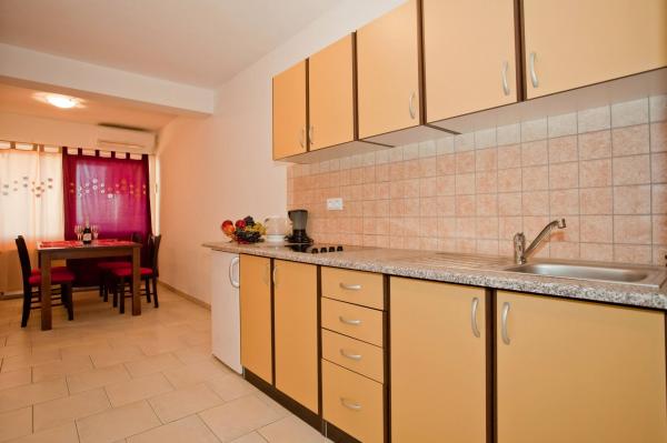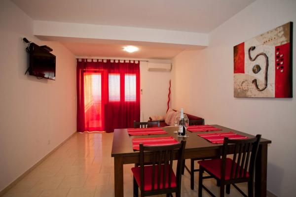 Ponujamo vam namestitev v petih vrhunsko urejenih in opremljenih apartmajih v novozgrajeni hiši, ki se nahaja le 200 m od plaže - trije apartmaji lahko sprejmejo 4 osebe, druga dva apartmaja pa sta namenjena 5 osebam. Preživite mirne družinske počitnice v majhnem in mirnem mestecu Pakoštane v osrčju Sredozemlja in Jadranskega morja.