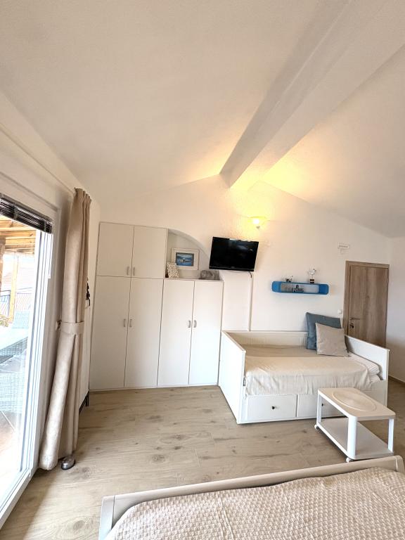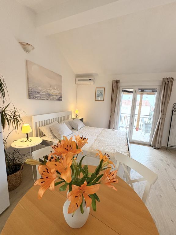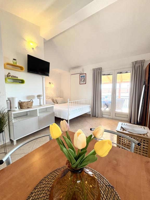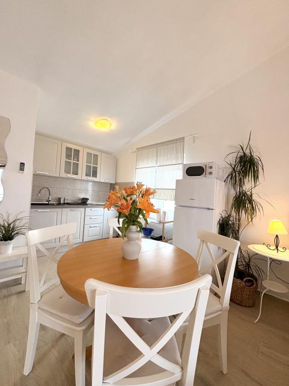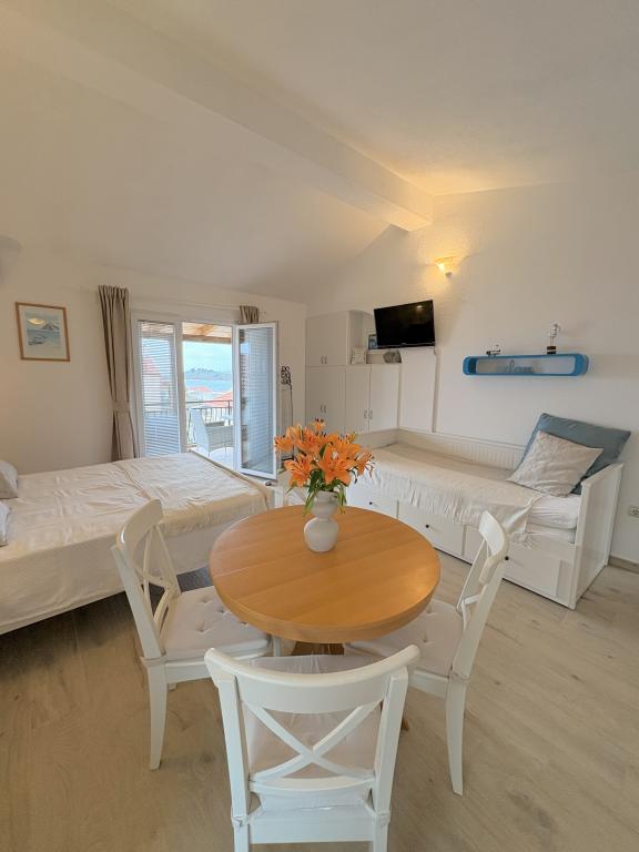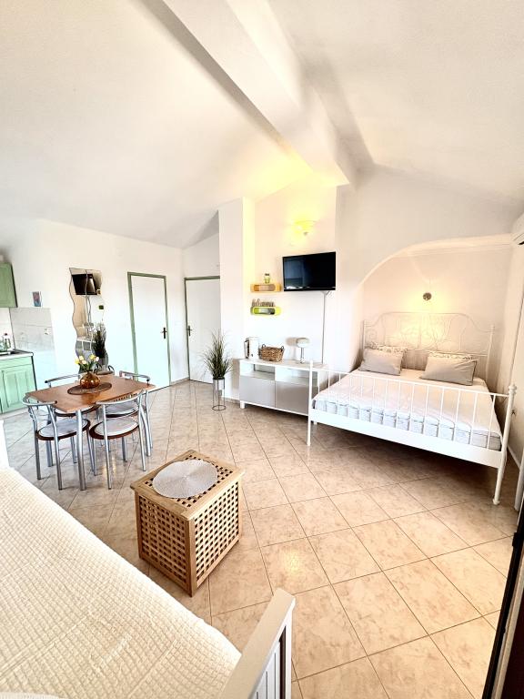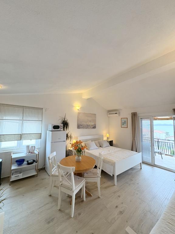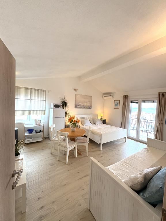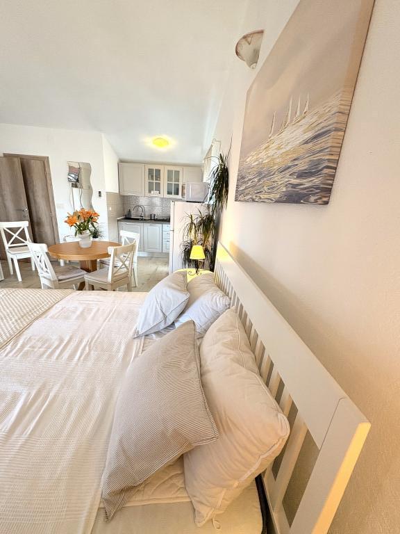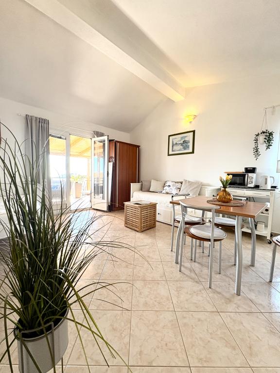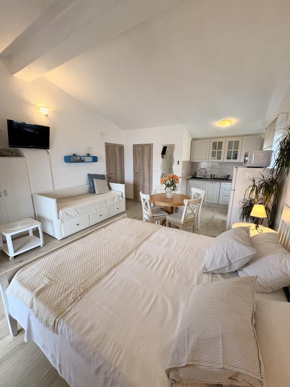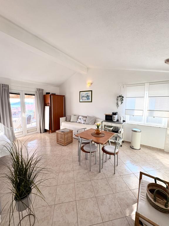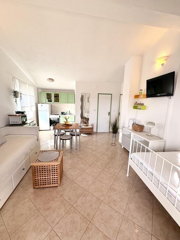 Zelo lepa namestitev, lepa velika terasa. Studio je dovolj za družino z majhnimi otroki. Oprema je super, vse, kar potrebujete. Zelo lepi lastniki, zelo prijazni in pripravljeni. Kratek sprehod do plaže. Zvečer in ponoči. Priporočamo vam, da uživate v počitnicah.