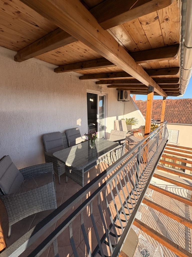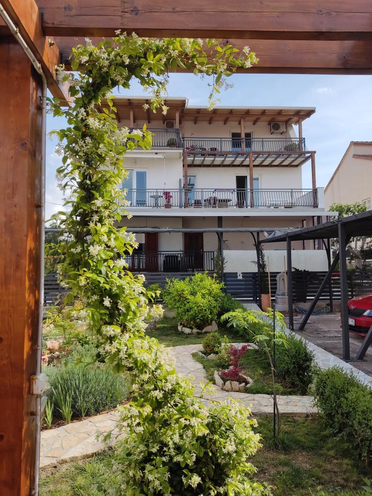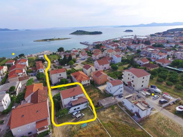 Hiša z apartmaji se nahaja v neposredni bližini morja in mesta. Le pet minut hoje do plaže in ponuja mir in zasebnost. Pred hišo je tam parkirišče za vsako vozilo in so zaščiteni pred soncem. Vrt je žar, ki se lahko vedno uporabijo. Vsak apartma ima svoj vhod. Velika balkona proti jugu s pogledom na morje.