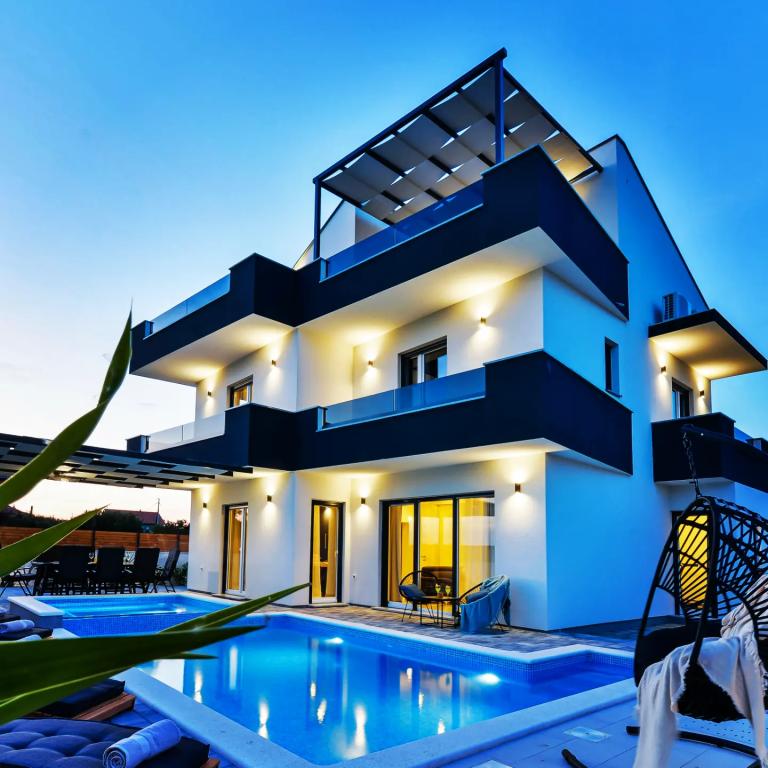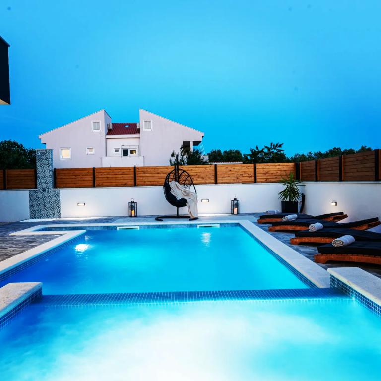 Hiša ima štiri apartmaje v celoti opremljena in sodobno v mirnem gozdu in obdani del Pakoštane. Nahaja se med Vranskim jezerom in morjem v bližini štirih nacionalnih parkov. Objekt se nahaja 10 minut hoje do plaže, mesto in vseh glavnih znamenitosti. Parkirišče za vsakega gosta. Dodatne dejavnosti v apartmajih je bazen.