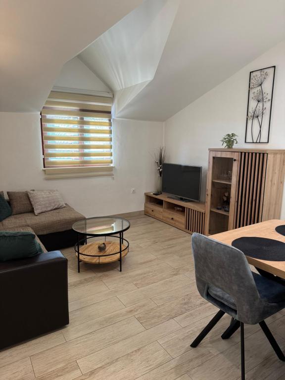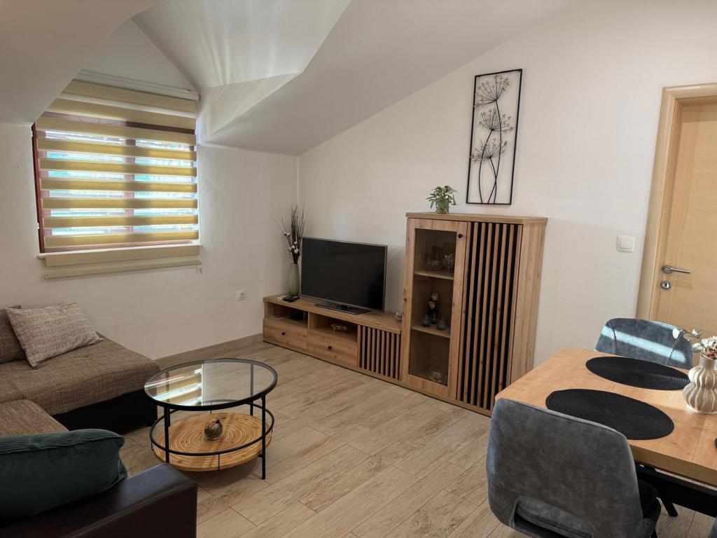 Polega prijaznih lastnikov, ki bivajo v hiši, je nedvomno velika prednost odlična terasa, skupaj z opremo. Stanovanje je dobro hlajeno in izjemno okusno opremljeno. Parkirnega prostora na dvorišču je dovolj, nikoli ni treba iskati prostora, ko se vcrneš nazaj z avtom. Dostop in čistoča nastanitve in vsega okoli je na najvišjem nivoju. Edino pri posteljah pa bi se dalo narediti kaj več na udobju. Z veseljem se bomo še vrnili.